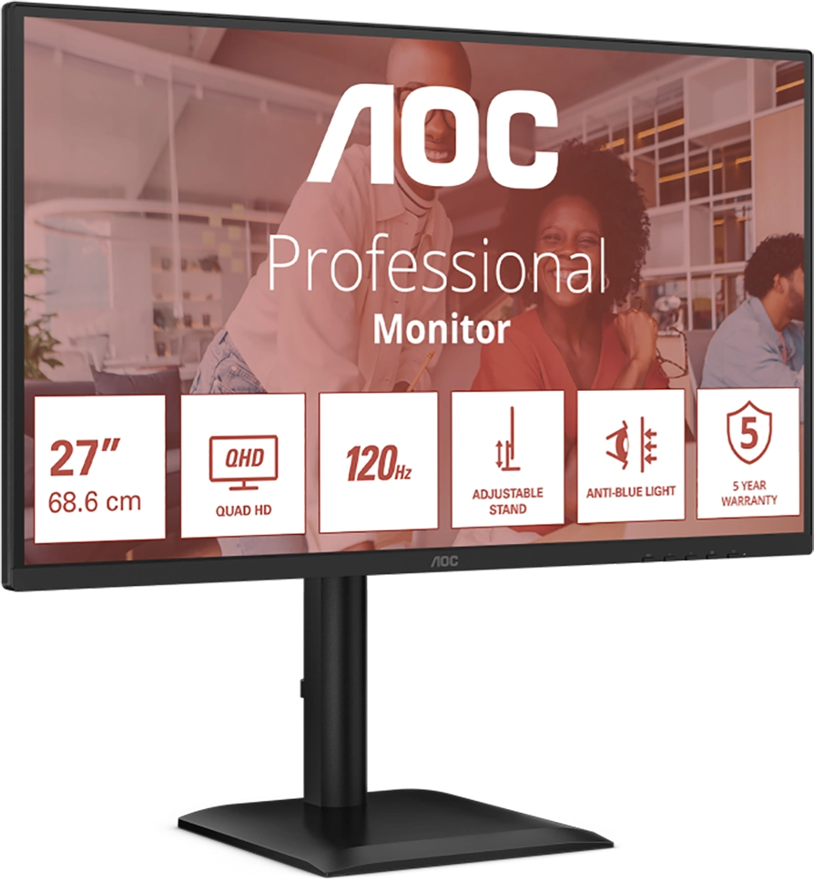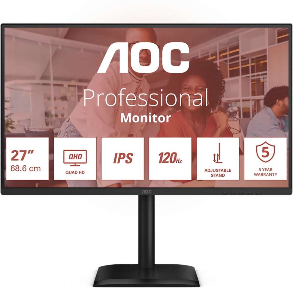 Монитор 27" AOC Q27E4U IPS, 2560x1440, 120Hz, 4ms, 350сd/m, 1500:1 | HDMI(2.0), DP(1.4), 4xUSB 3.2 | HAS, Pivot, Swivel, InPSU, Speakers, Vesa 100, Black | НИКС Екатеринбург