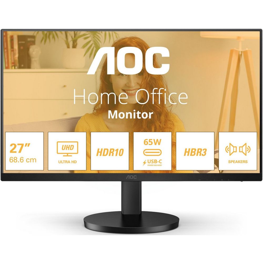 Монитор 27" AOC U27B3CF IPS, 3840x2160, 60Hz, 4ms, 350сd/m, 1000:1, HDR10 | HDMI(2.0), Type-C(PD-65W), 2xUSB 3.2 | HAS, InPSU, Speakers, Vesa 100, Black
