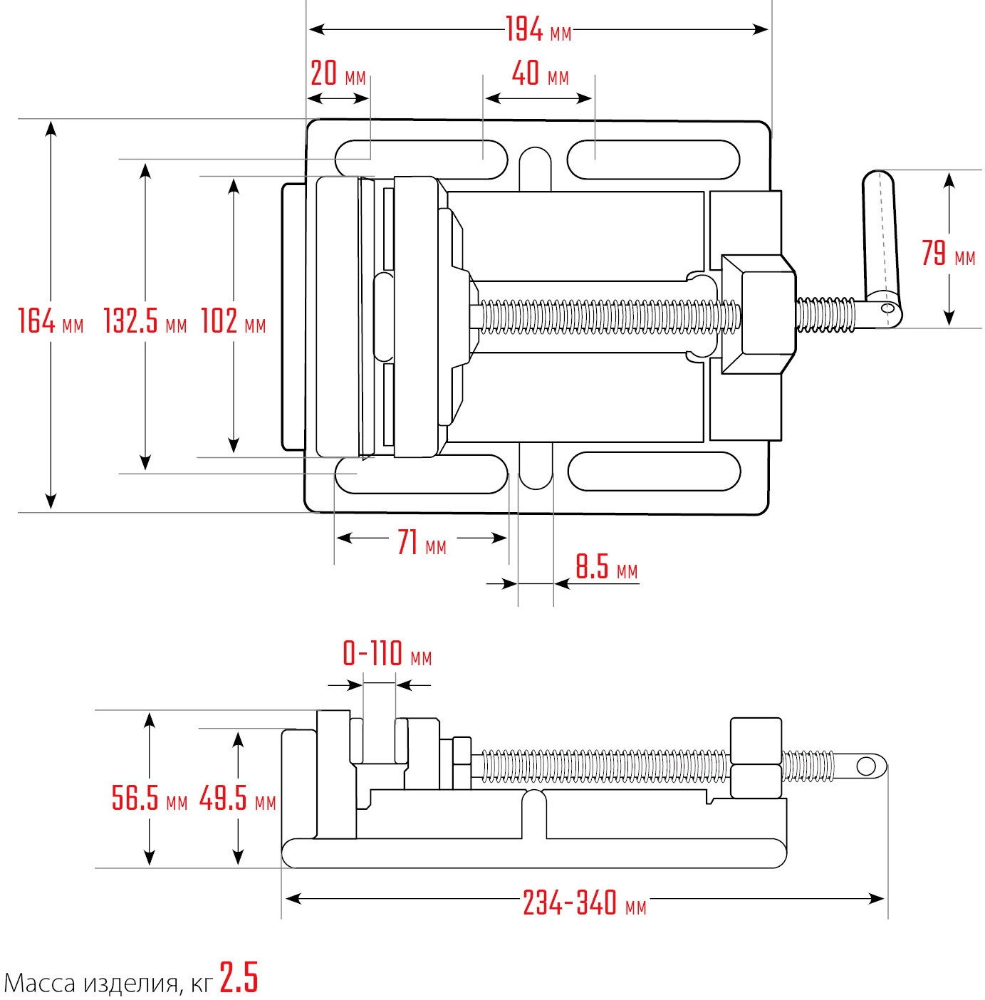 Ширина губок