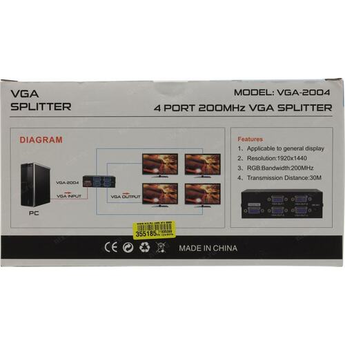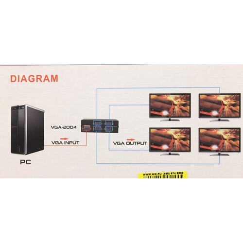 Разветвитель 4-Port Video Splitter (VGA15F+4xVGA15F) + б.п.