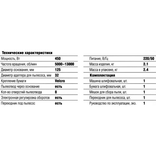 Шлифовальная машина эксцентриковая, обеспечивает универсальное применение (грубая шлифовка, финишная шлифовка и полировка) благодаря вращательному и вибрационному режимам и электронному контролю скорости. Крепление бумаги Velcro.