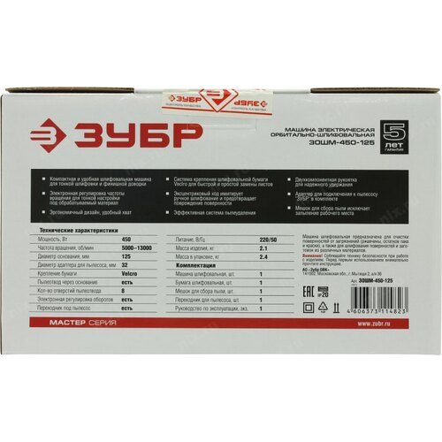 ЗУБР Орбитально-шлифовальная машина [ЗОШМ-450-125] ( 125мм, 450Вт )