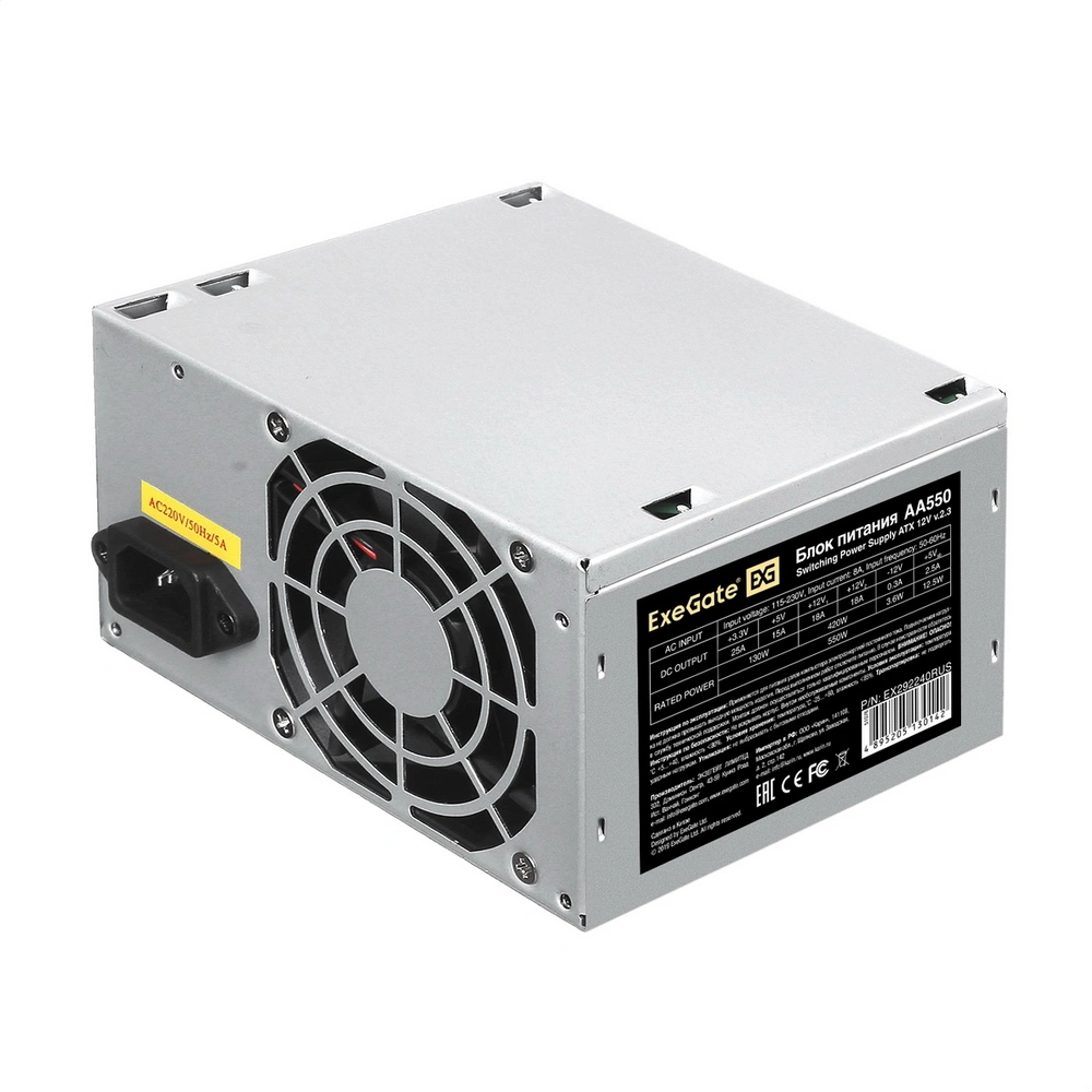 Блок питания 550W ExeGate AA550 (ATX, SC, 8cm fan, 24pin, 4pin, 2xSATA, IDE, кабель 220V с защитой от выдергивания) (EX292240RUS-S)