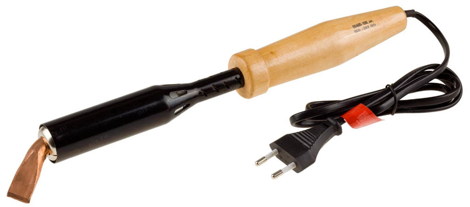 Электропаяльник непрерывного нагрева ЗУБР 55405-150_z01, предназначен для пайки медных проводников сечением до 2 мм?, отпайки и лужения металлических элементов толщиной до 1.5 мм. Преимущества: • Надежный нагревательный элемент позволяет разогреть жало за считанные минуты; • Эргономичная рукоятка из прочной древесины; • Долговечное медное жало; • Соответствует ГОСТ Р МЭК 60335-2-45-99.