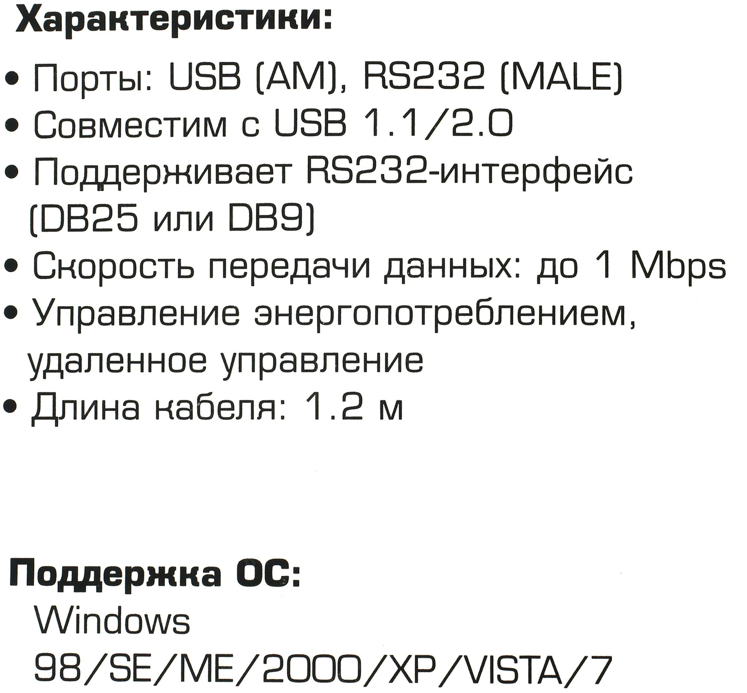 Кабель-переходник для подключения оборудования с COM-портом к порту USB компьютера