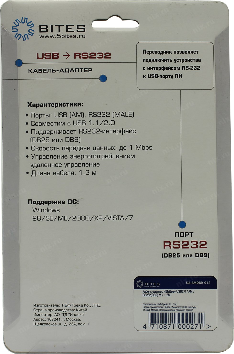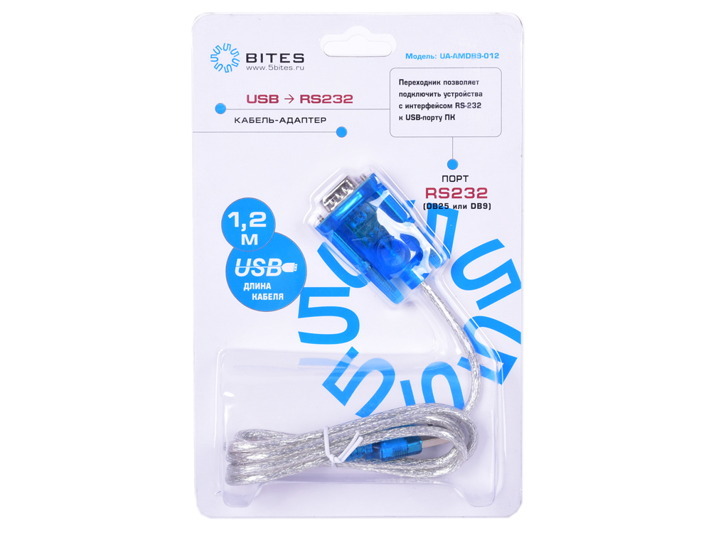 5bites <UA-AMDB9-012> Кабель-адаптер USB2.0 AM-->COM9M (RS232) 1.2м