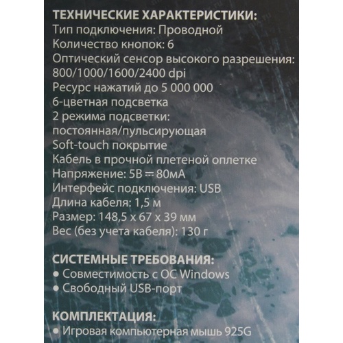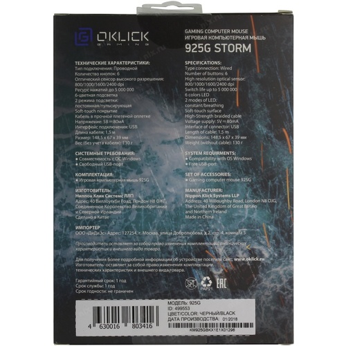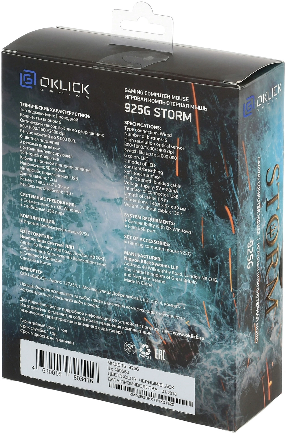 Мышь Оклик 925G STORM черный оптическая 3200dpi USB 6but (499553) OKLICK
