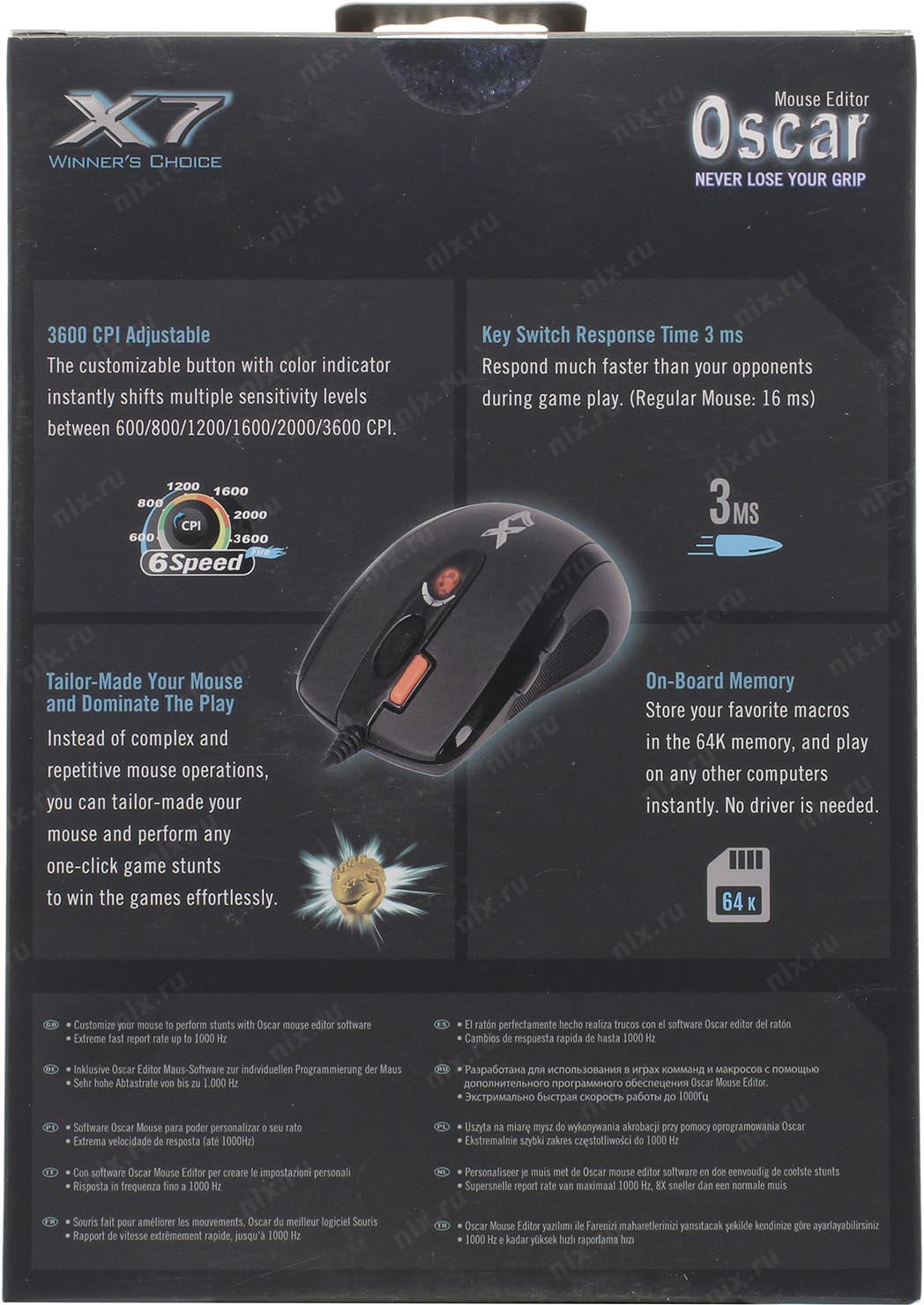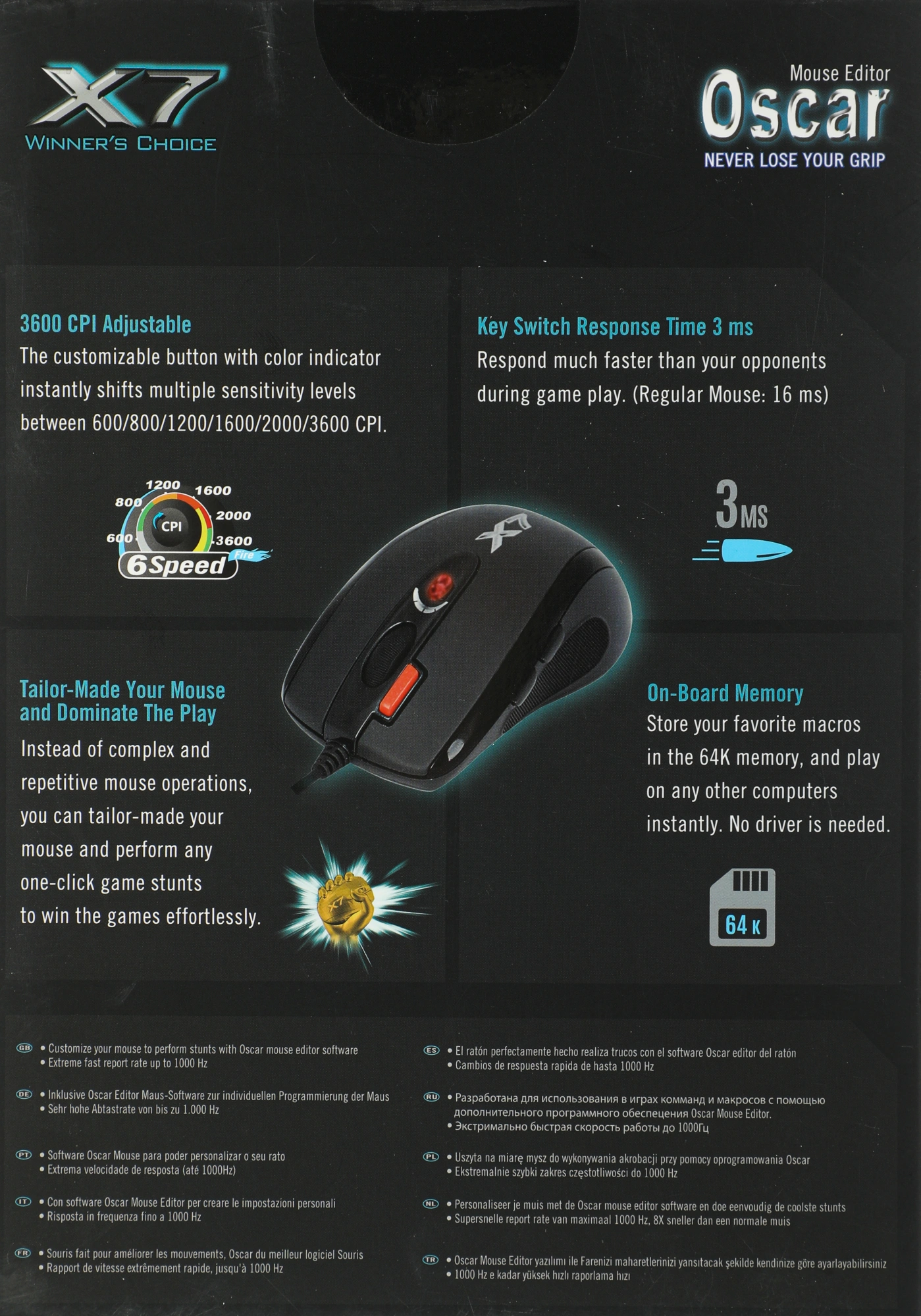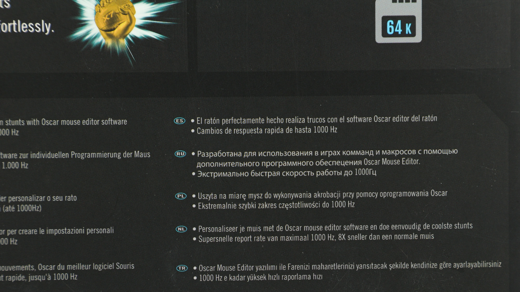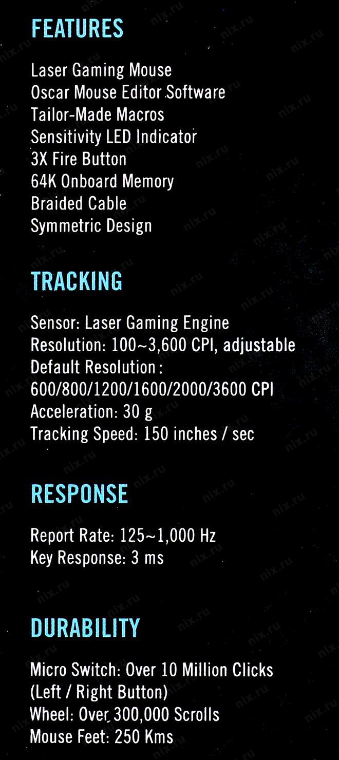 Настраиваемое время отклика от 3 до 30 мс;;Специальное покрытие корпуса, исключающее выскальзывание мыши из руки