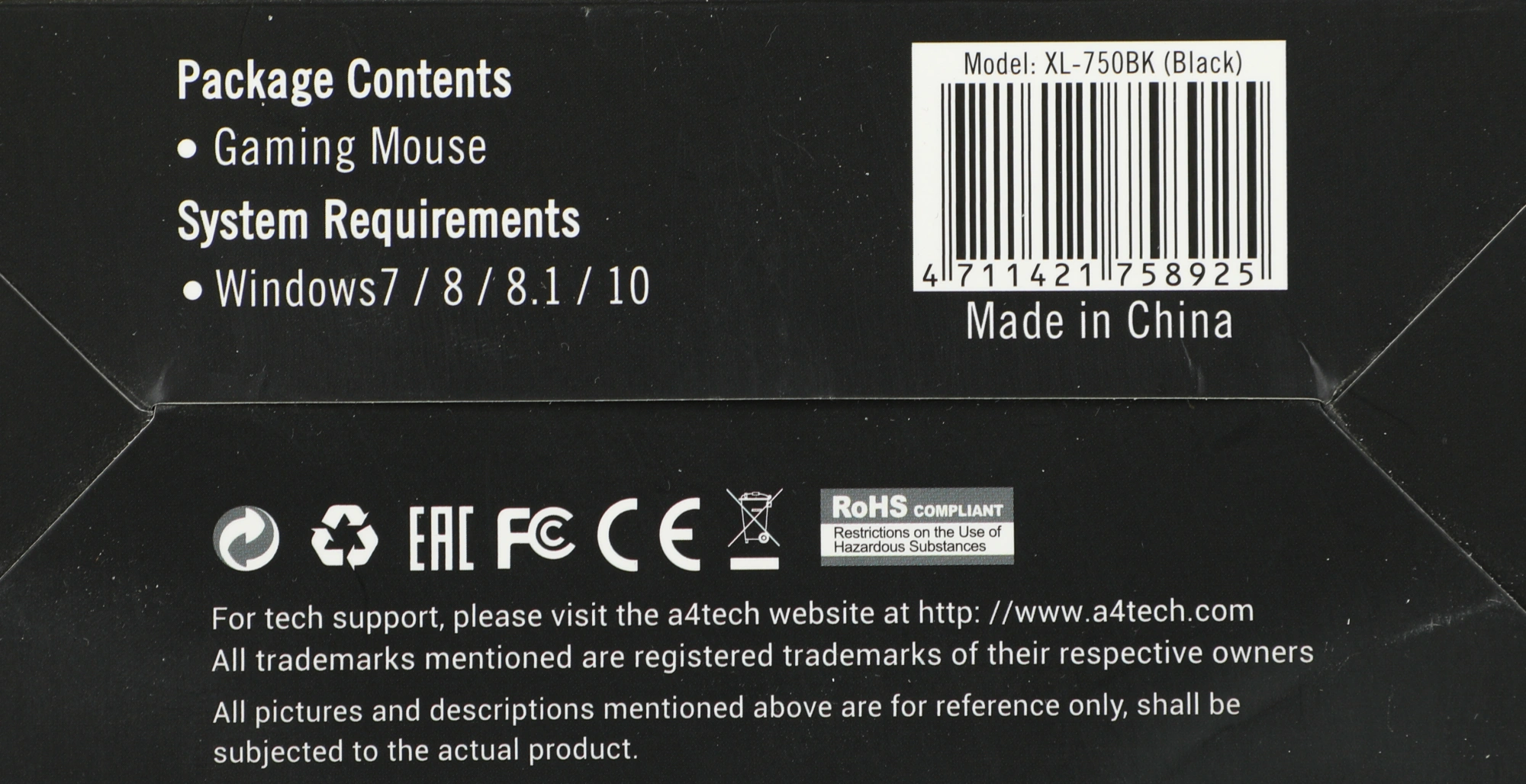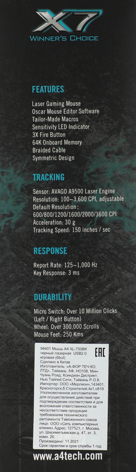 Мышь A4Tech A-4Tech Мышь XL-750BK (черные) USB [94401] [XL-750BKUSB]
