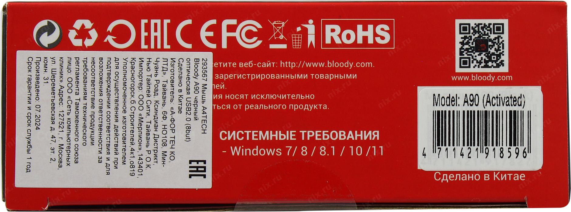 Мышь A4Tech Bloody A90 черный оптическая 6200dpi USB 8but