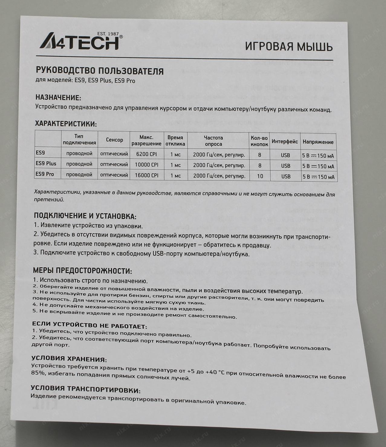 Размеры упаковки (измерено в никсе)