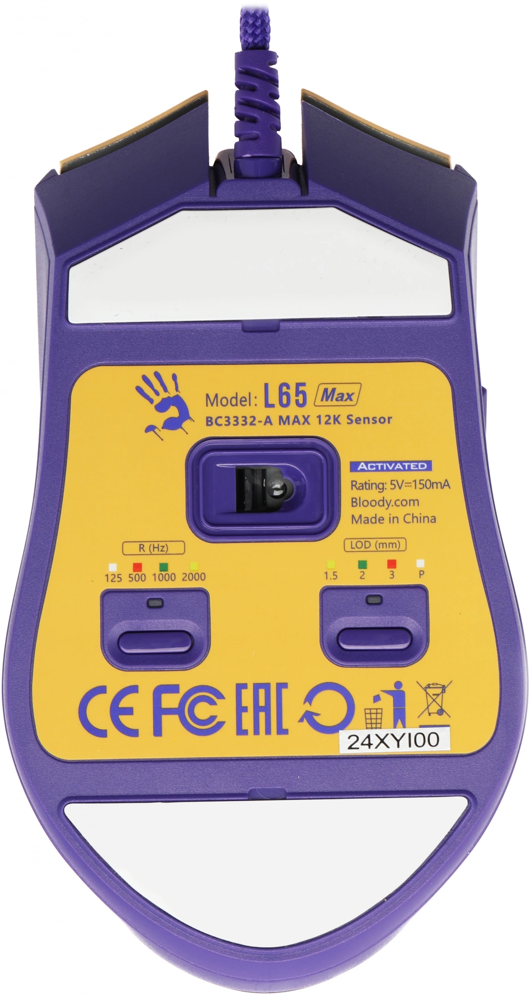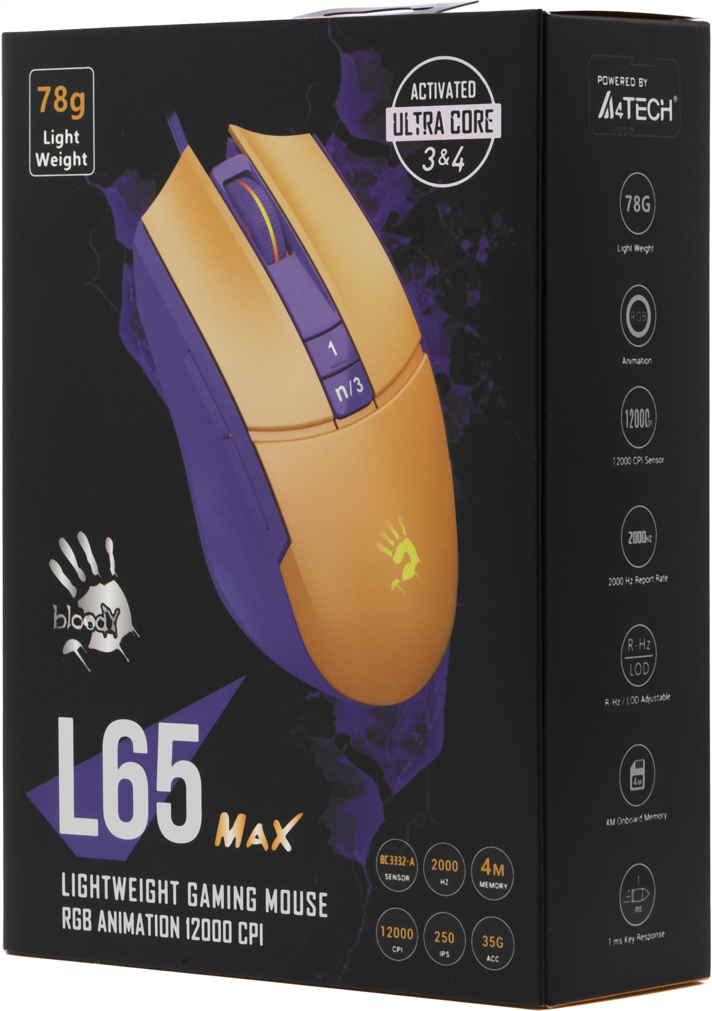 Мышь A4Tech Bloody L65 Max желтый/фиолетовый оптическая 12000dpi USB 6but (L65 MAX/ROYAL VIOLET)
