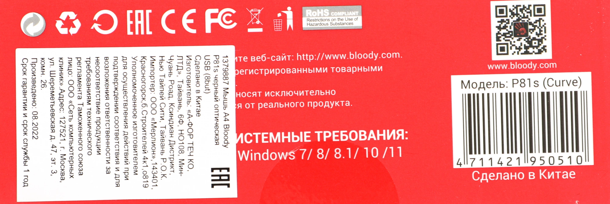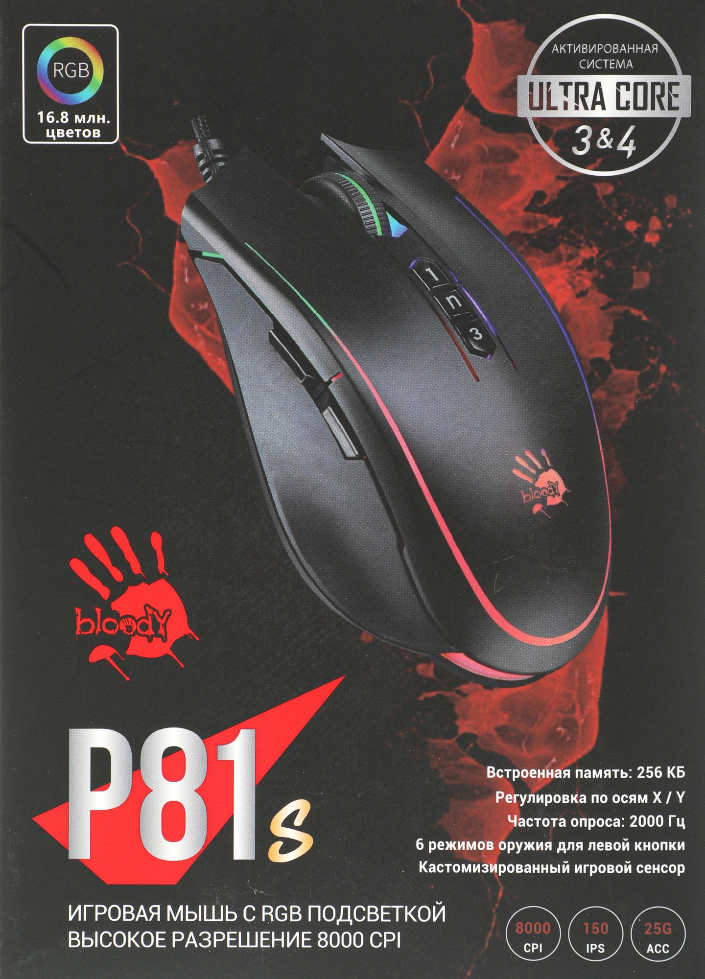 Мышь A4Tech Bloody P81s черный оптическая 8000dpi USB 8but (P81S CURVE ACTIVATED)