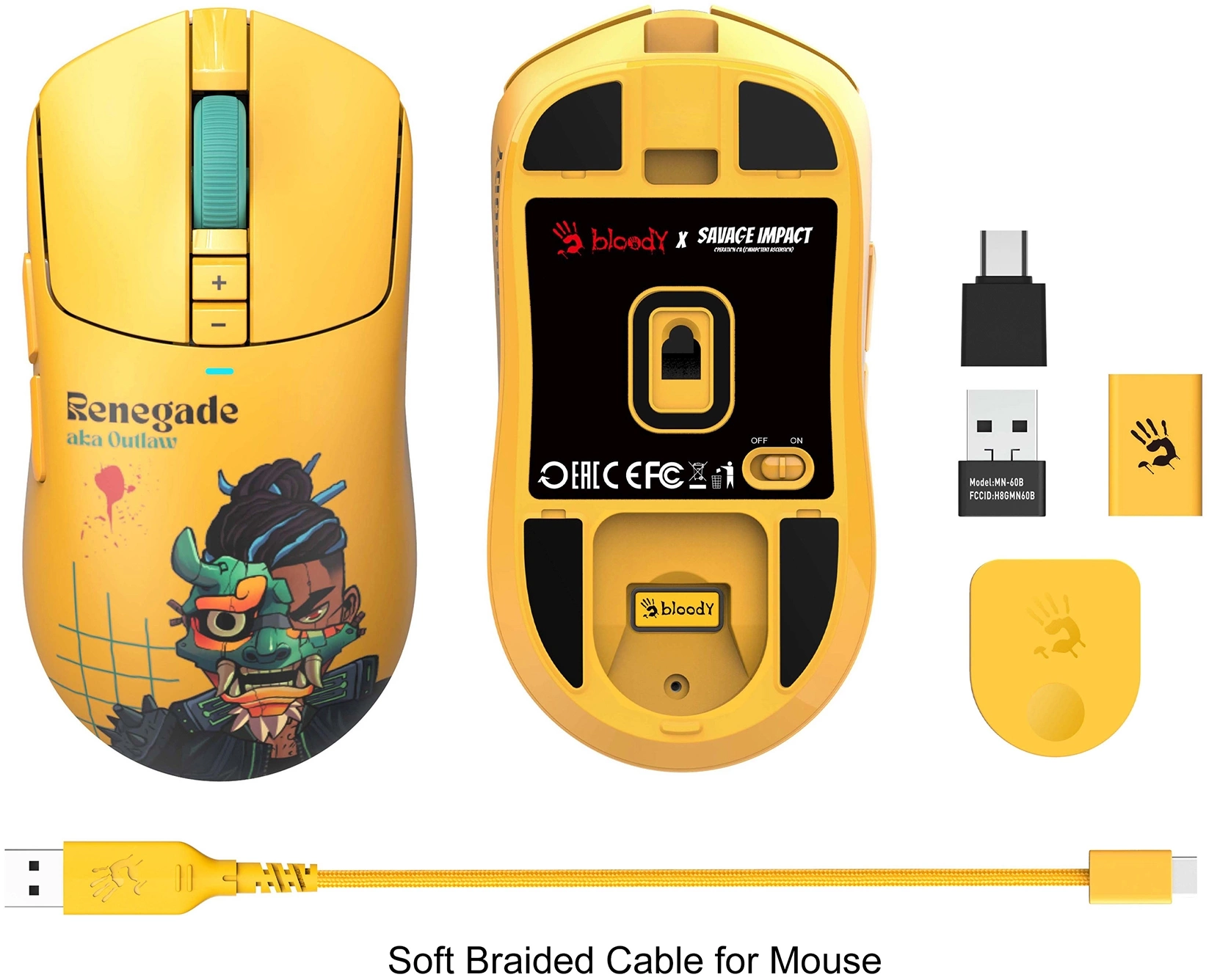 Мышь A4Tech Bloody R72 Ultra желтый оптическая 20000dpi беспров. USB-C 6but