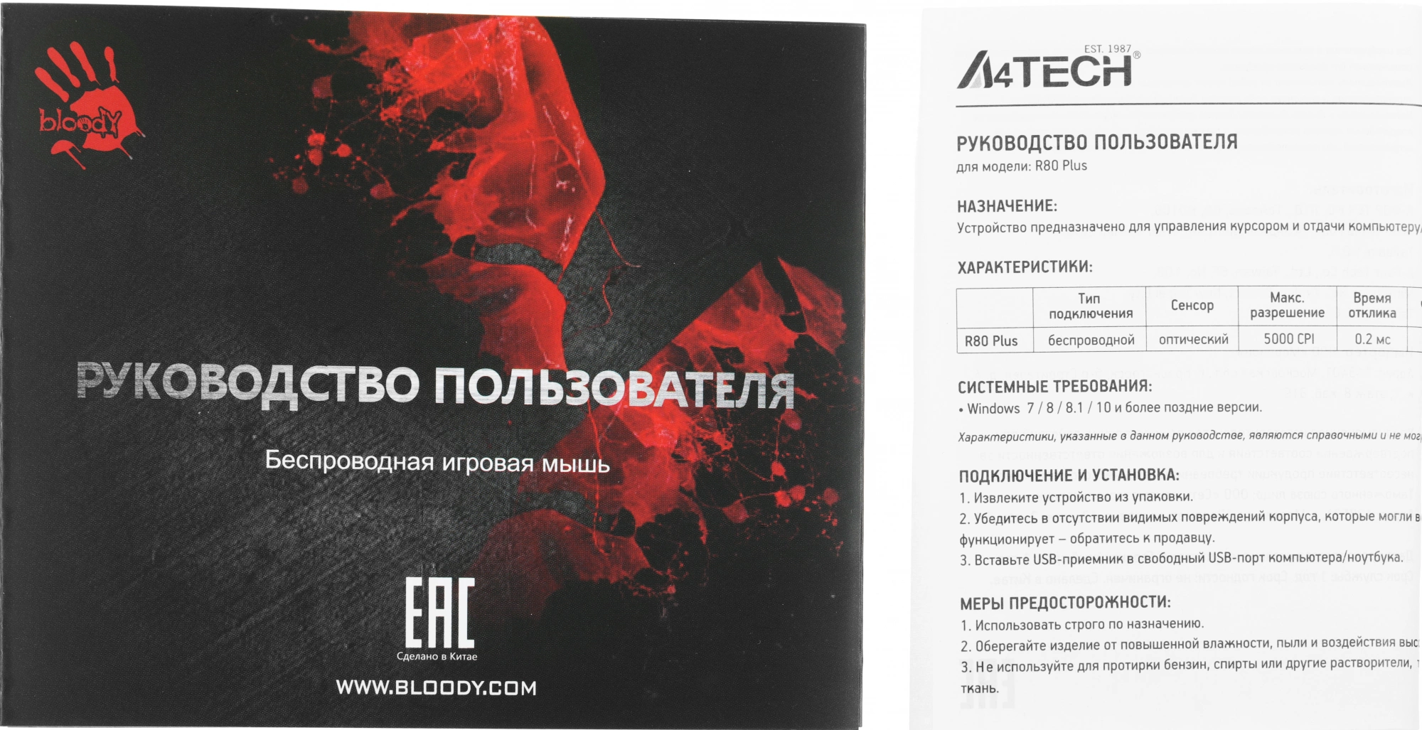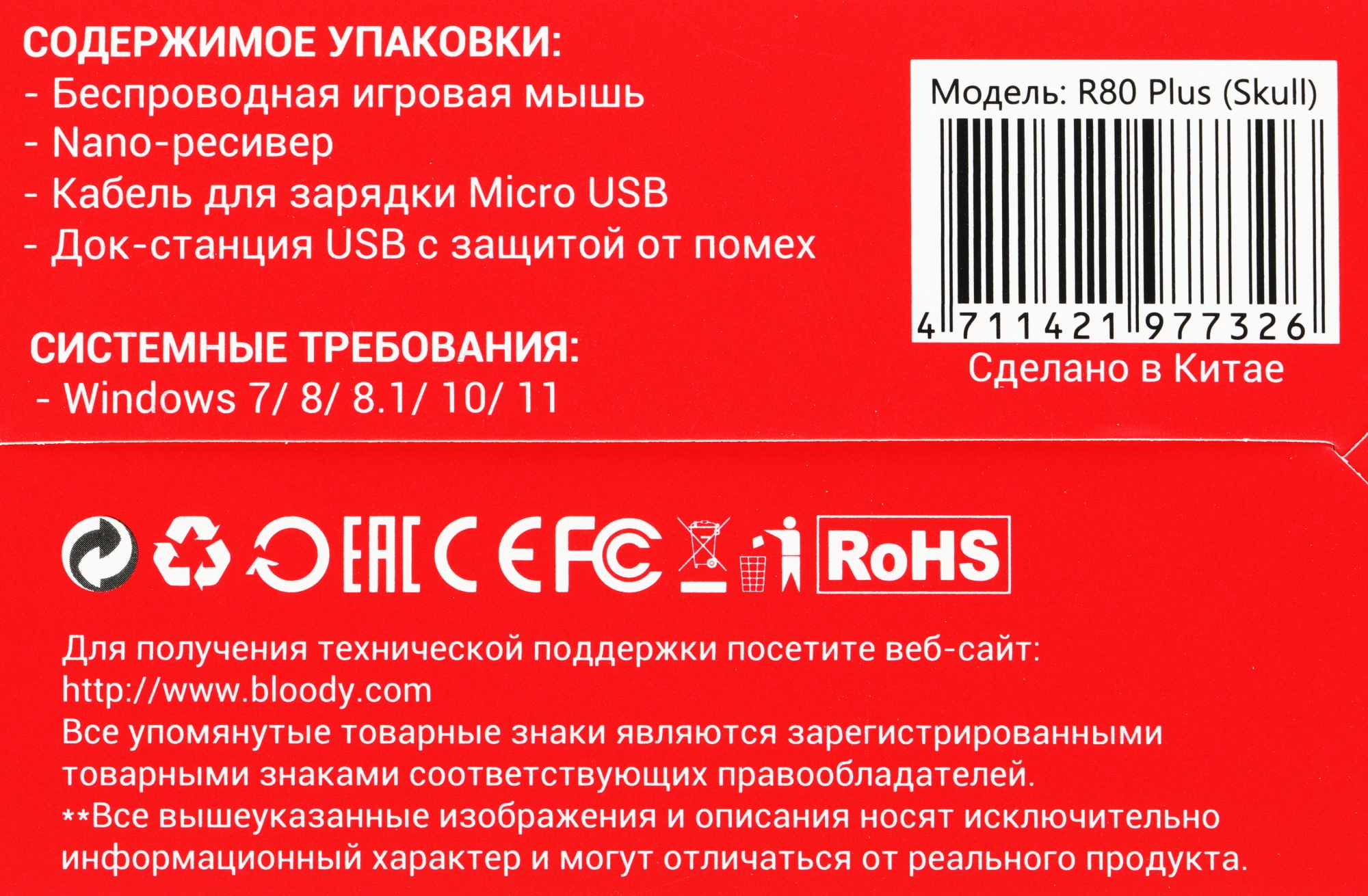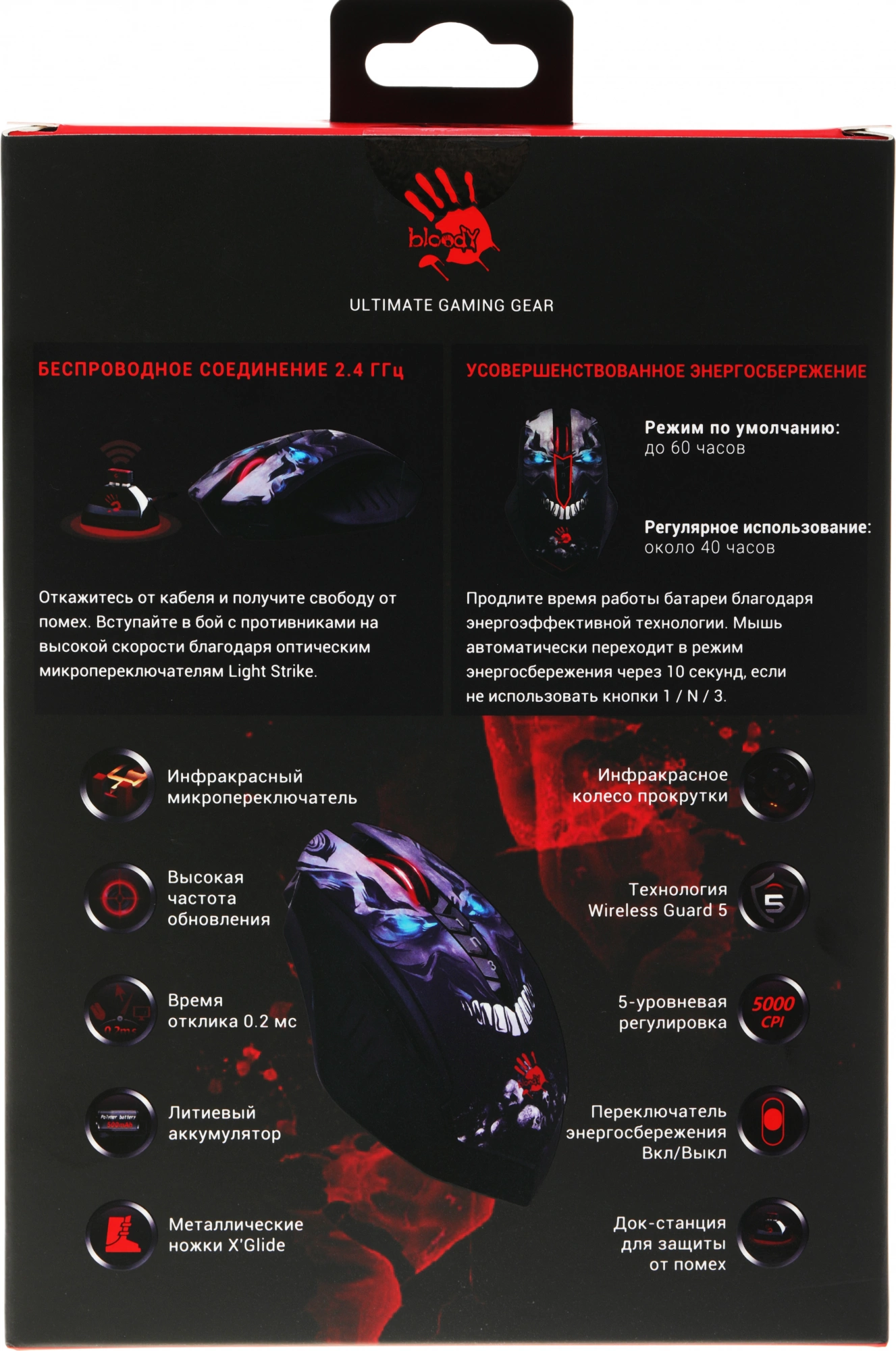 Мышь A4Tech Bloody R80 Plus Skull черный/рисунок оптическая 5000dpi беспров. USB 7but (R80 PLUS (SKULL))