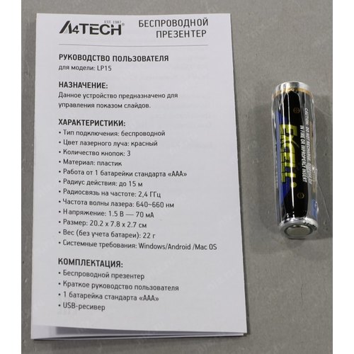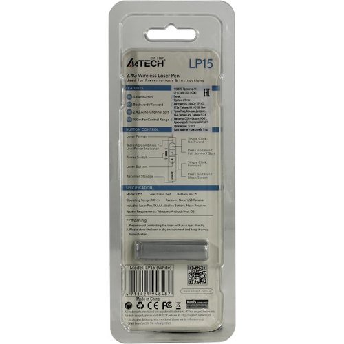 Презентер A4Tech Fstyler LP15 Radio USB (15м) белый LP15 WHITE | НИКС Екатеринбург
