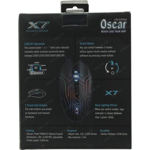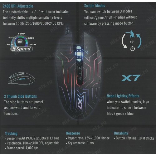 Мышь A4Tech X77 черный оптическая 2400dpi USB 8but (X77 (MAZE))