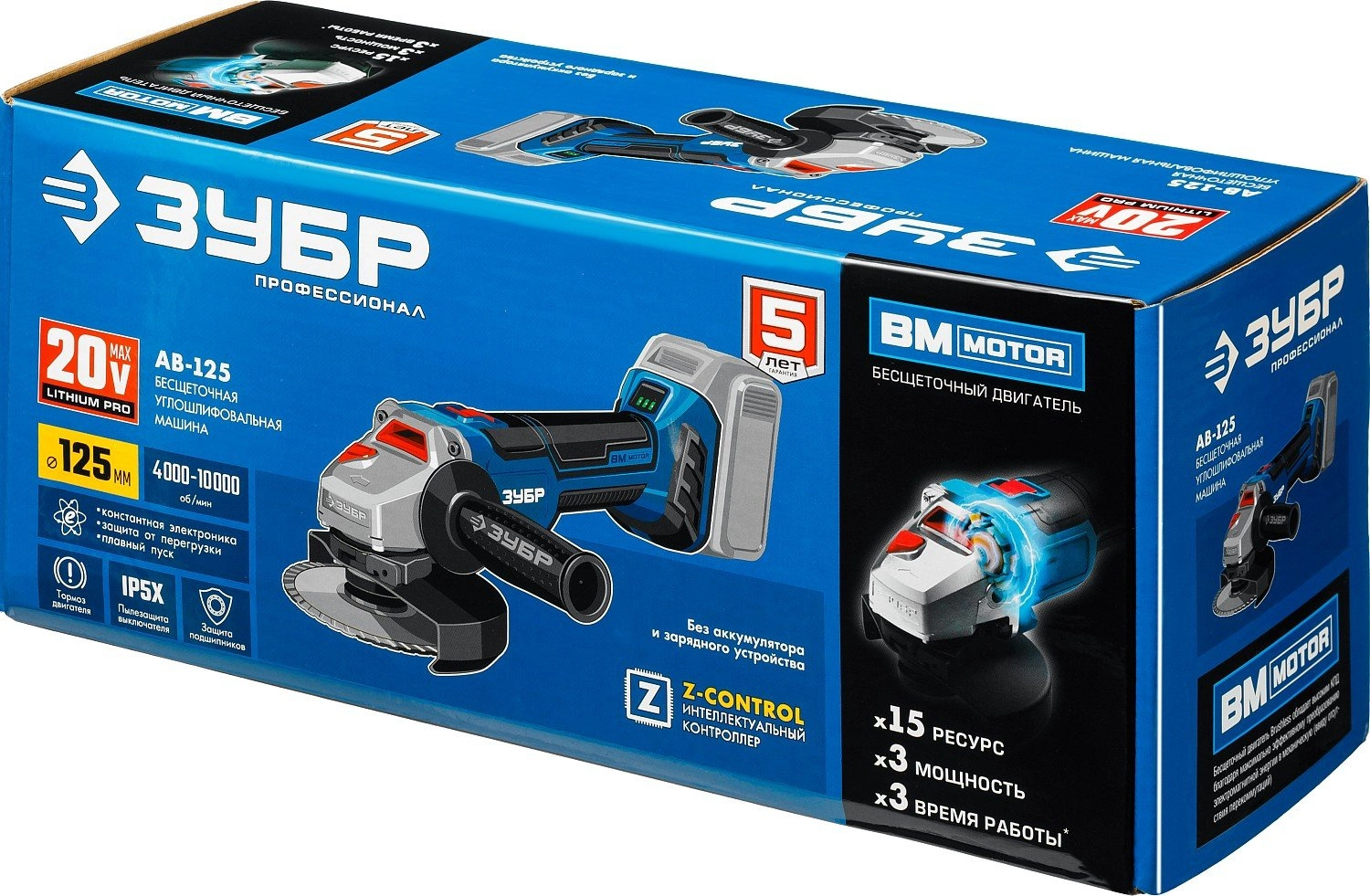 Углошлифовальная машина Зубр AB-125 10000об/мин рез.шпин.:M14 d=125мм