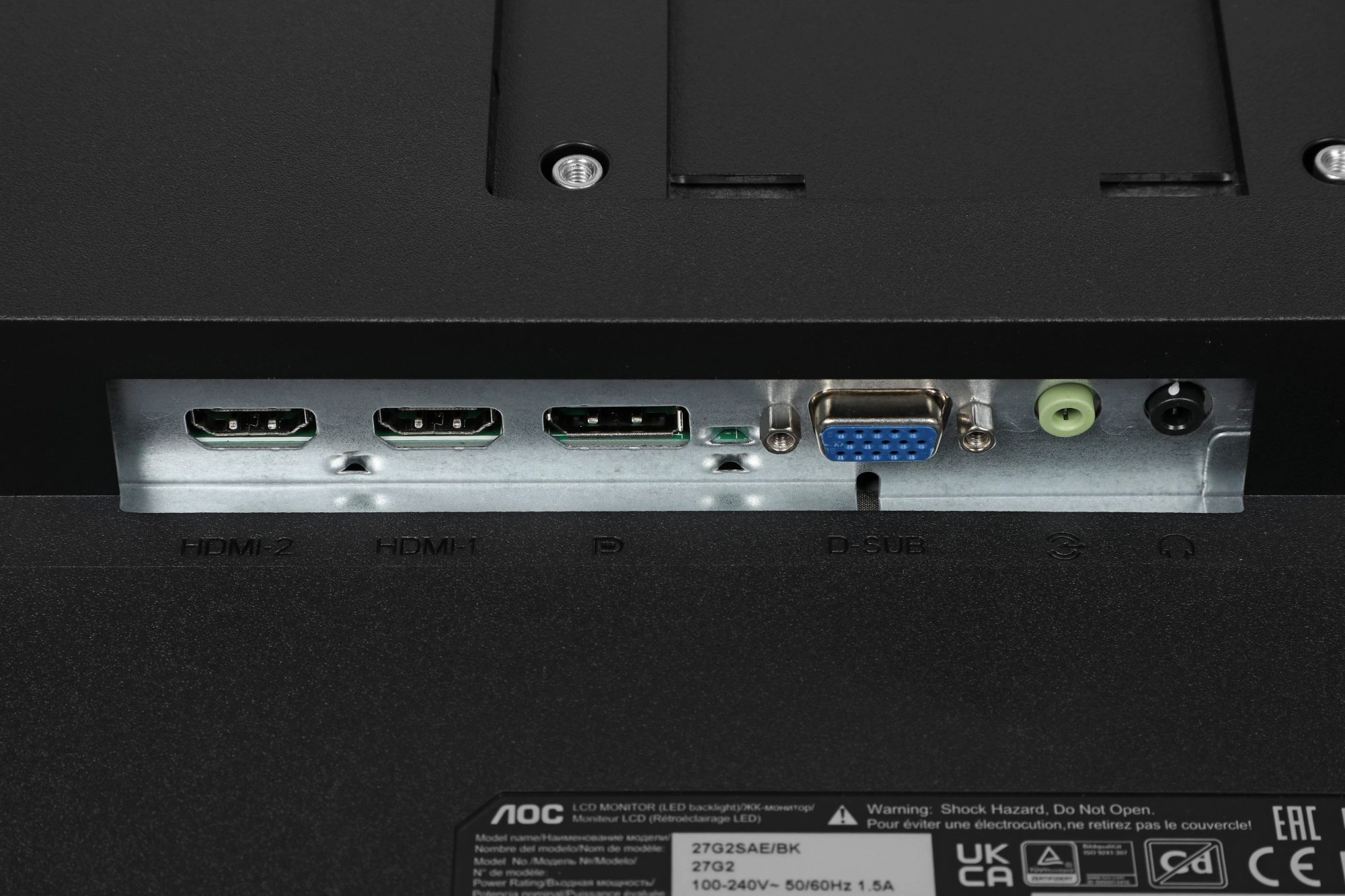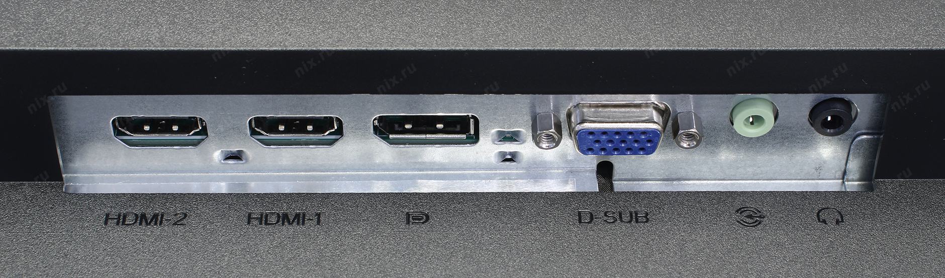 2 x HDMI, DisplayPort, VGA (15-пиновый коннектор D-sub), аудиовход миниджек 3.5 мм, разъем 3.5 мм для подключения наушников