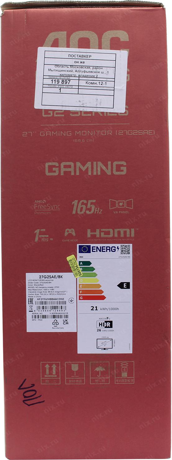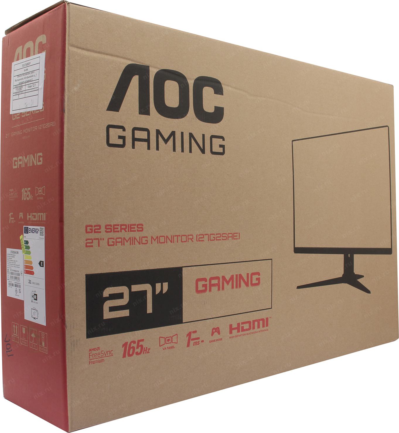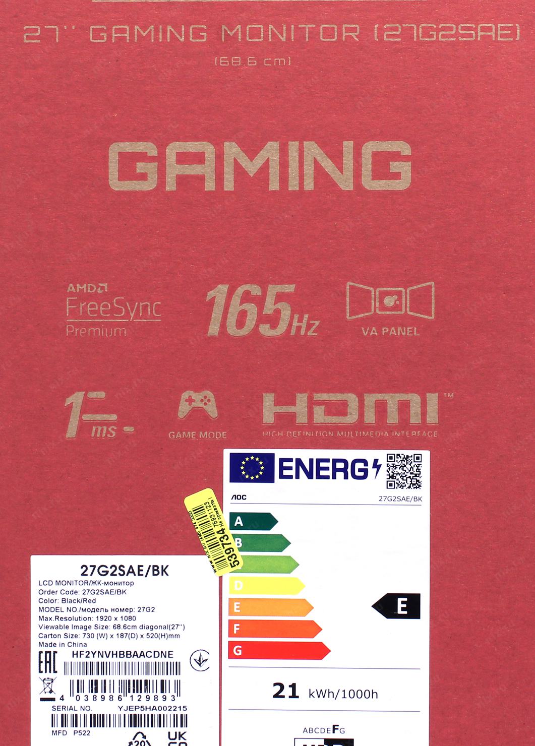 Монитор AOC 27" Gaming 27G2SAE черный/красный VA LED 16:9 HDMI M/M матовая 350cd 178гр/178гр 1920x1080 165Hz FreeSync Premium VGA DP FHD 4.63кг