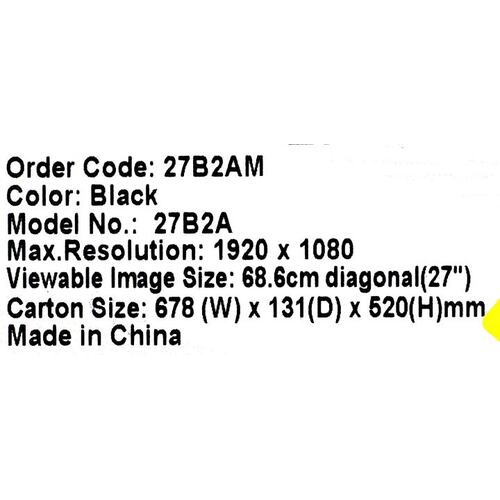 Монитор AOC 27" Value Line 27B2AM черный VA LED 16:9 HDMI M/M матовая 250cd 178гр/178гр 1920x1080 75Hz VGA FHD 3.6кг | НИКС Екатеринбург