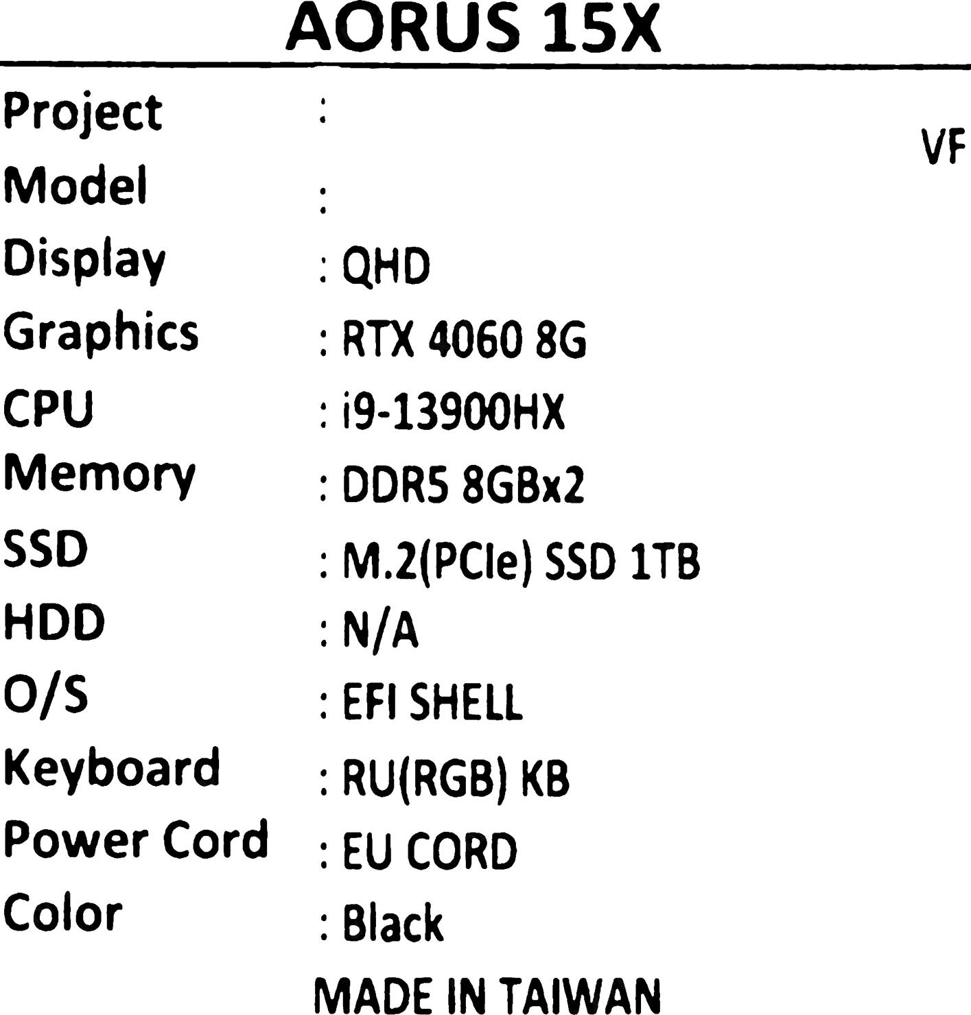 Ноутбук AORUS 15X Core i9-13900HX/16Gb/SSD1Tb/15.6"/RTX 4060 8Gb/IPS/QHD/165Hz/noOS/black (AKF-B3KZ754SD)