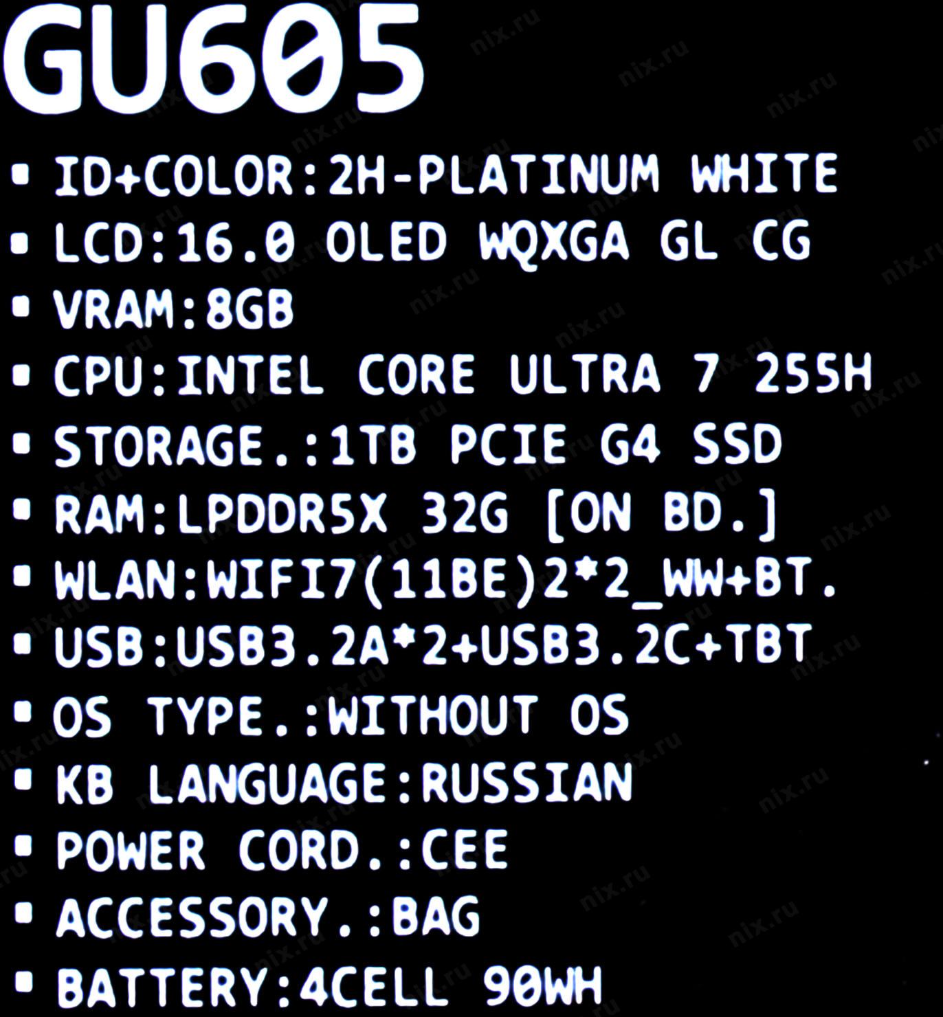 Ноутбук ASUS ROG Zephyrus G16 GU605CP-QR069 [90NR0MM2-M003L0] White 16" (WQXGA OLED Ultra 7 255H(2Ghz)/32768Mb/1024PCISSDGb/RTX 5070(8192Mb)/noOs)
