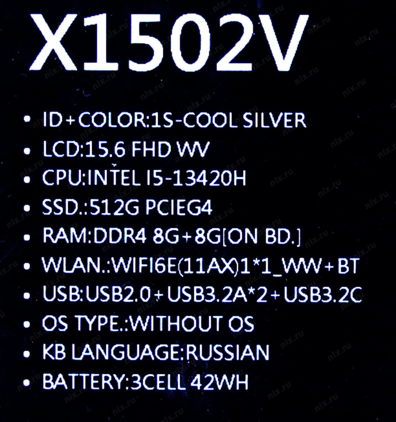 Ноутбук ASUS VivoBook 15 X1502VA-BQ1373 [90NB10T2-M01Y90] Cool Silver 15.6" (FHD i5 13420H(2.1Ghz)/16384Mb/512PCISSDGb/Iris Xe Graphics/noOS)