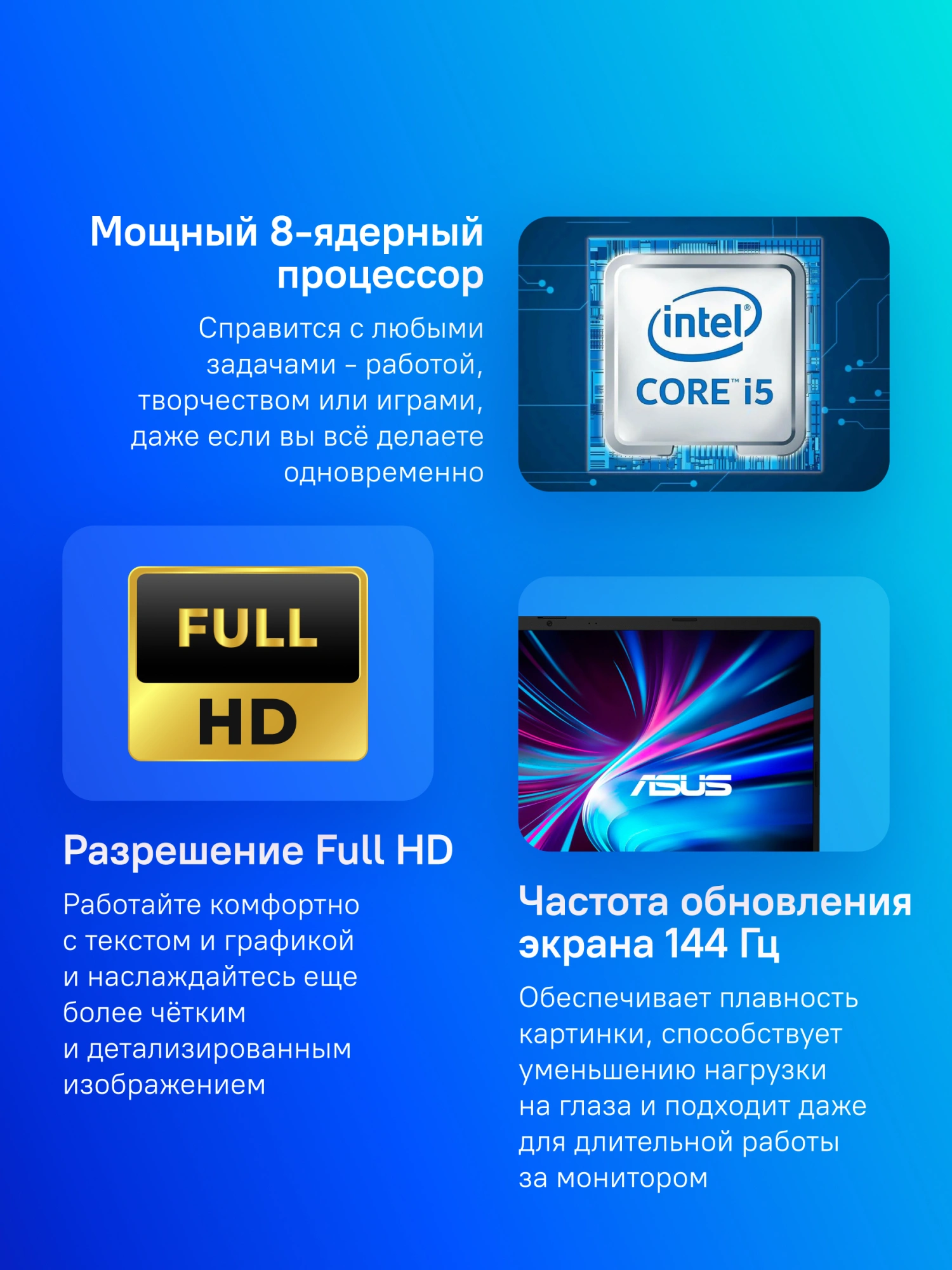 Ноутбук ASUS VivoBook 16 V3607VH-RP046 [90NB16L1-M004D0] Black 16" (WUXGA 5 210H/16Gb/SSD1Tb/RTX5050 8Gb/noOS)