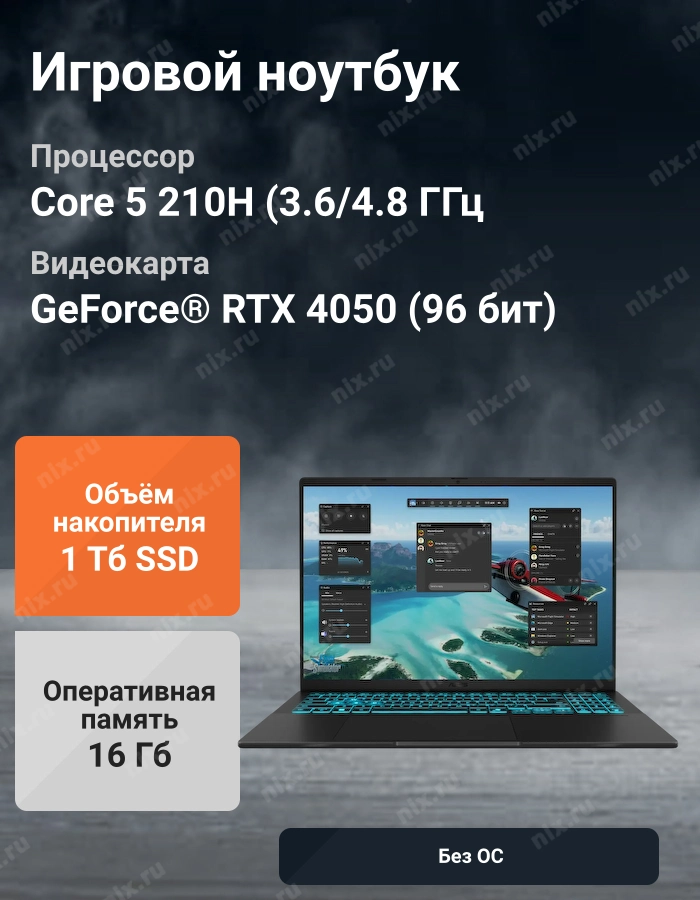 Без ОС (может быть установлен DOS, Linux, другие бесплатные ОС или noOS)