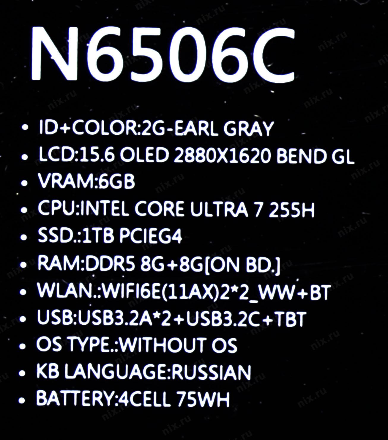 Ноутбук ASUS VivoBook Pro 15 N6506CU-MA033 [90NB15E3-M001E0] Earl Gray 15.6" (OLED 2880x1620 Ultra 7 255H(2Ghz)/16384Mb/1024PCISSDGb/RTX4050(6144Mb)/DOS + DialPad)