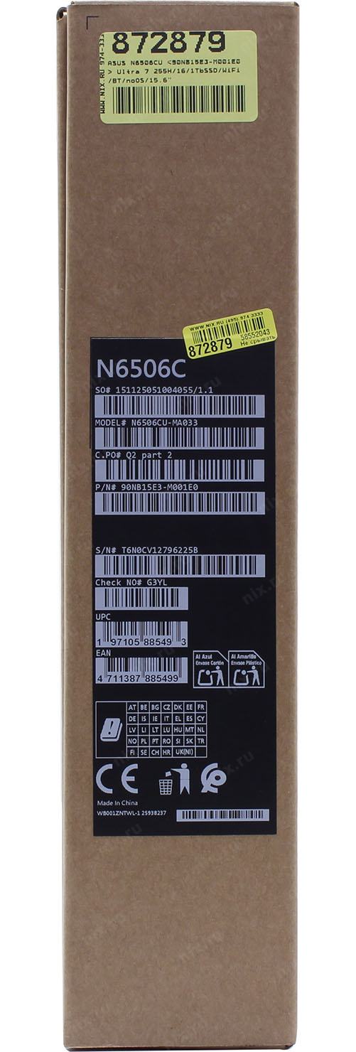 Ноутбук ASUS VivoBook Pro 15 N6506CU-MA033 [90NB15E3-M001E0] Earl Gray 15.6" (OLED 2880x1620 Ultra 7 255H(2Ghz)/16384Mb/1024PCISSDGb/RTX4050(6144Mb)/DOS + DialPad) | НИКС Екатеринбург