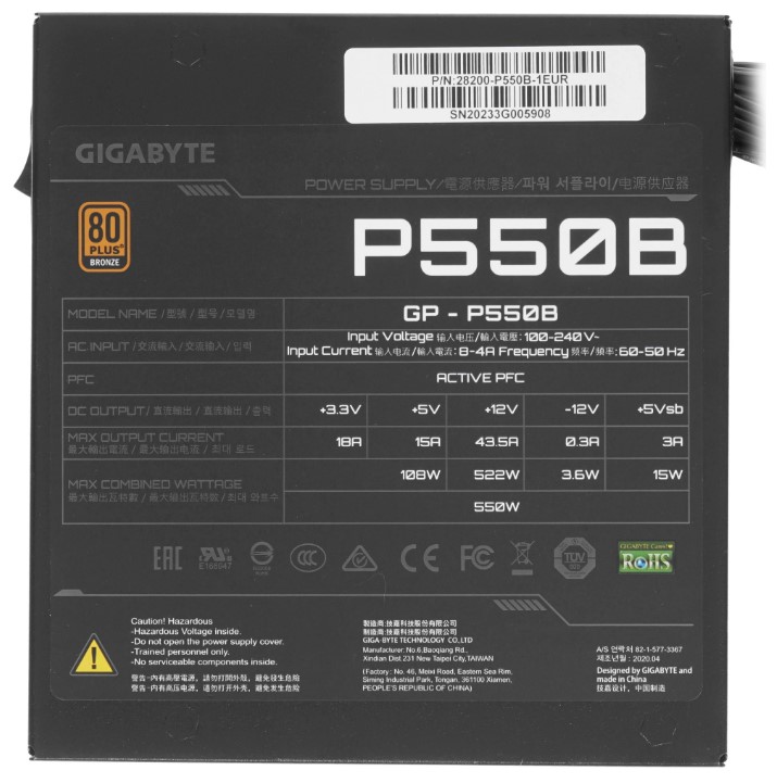Блок питания ATX 550W GP-P550B GIGABYTE