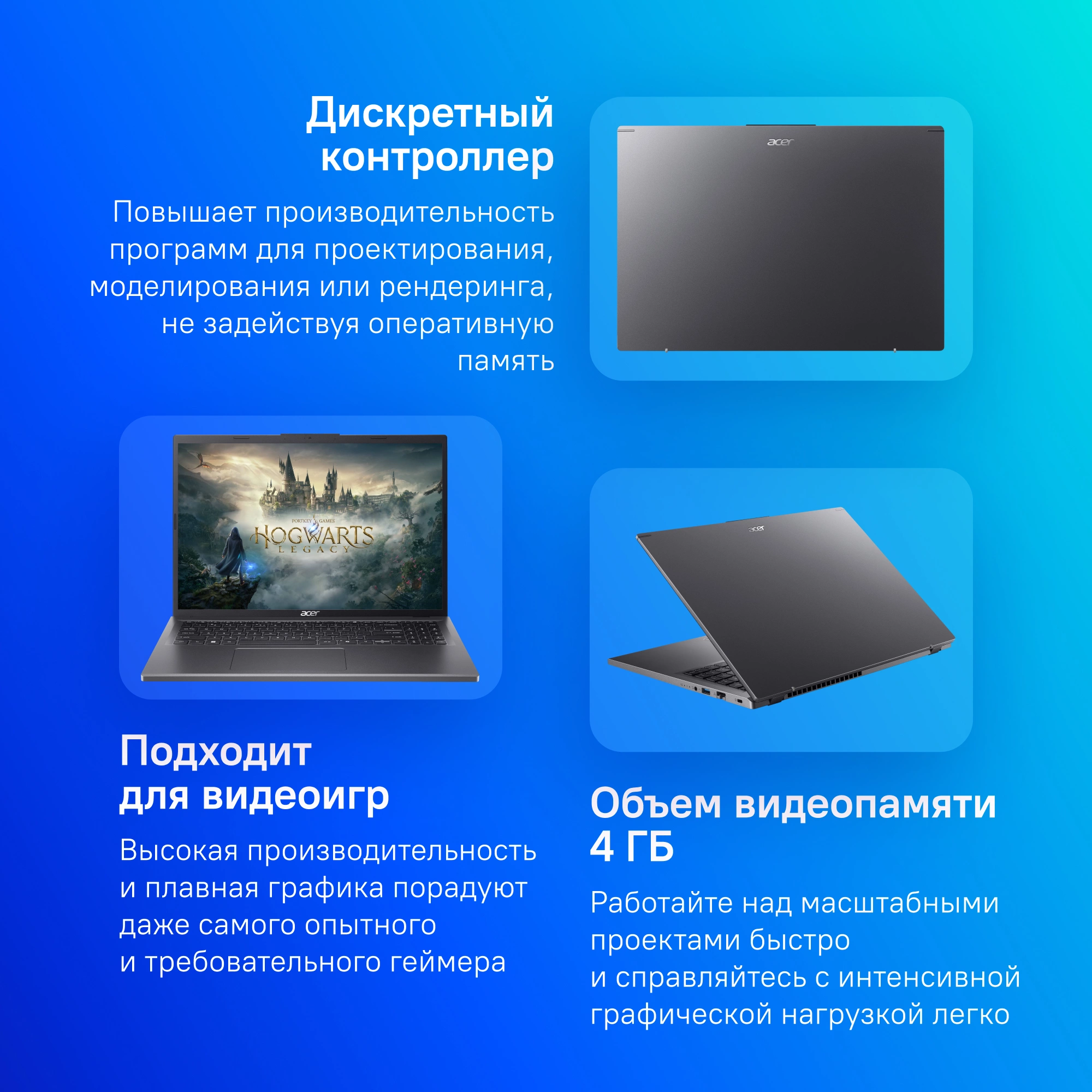 Ноутбук Acer Aspire 16 A16-51GM-5995 Core 5 120U 16Gb SSD512Gb NVIDIA GeForce RTX 2050 4Gb 16" IPS WUXGA (1920x1200) без ОС metall WiFi BT Cam (NX.KXUCD.002)