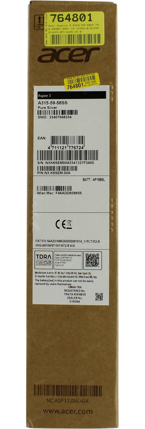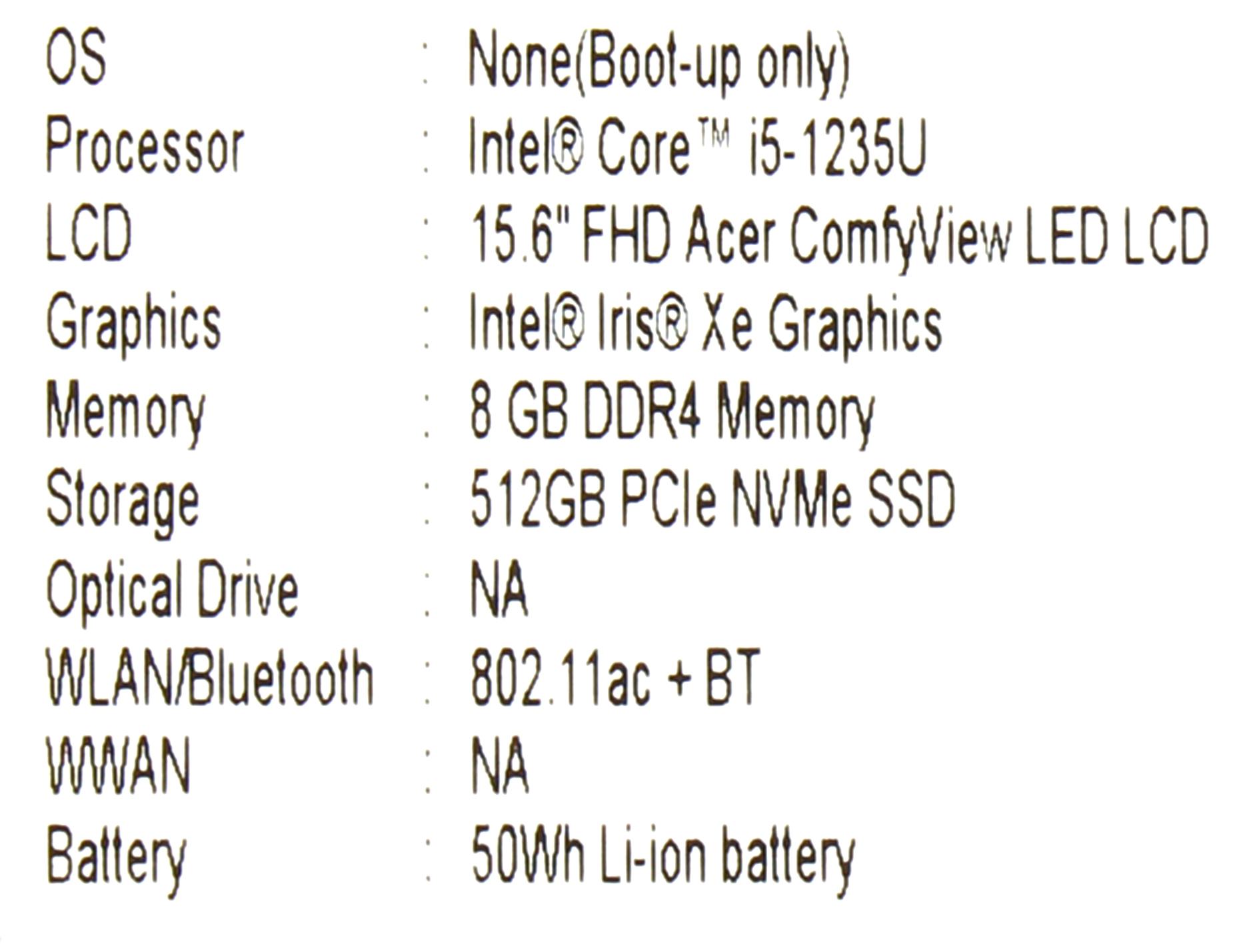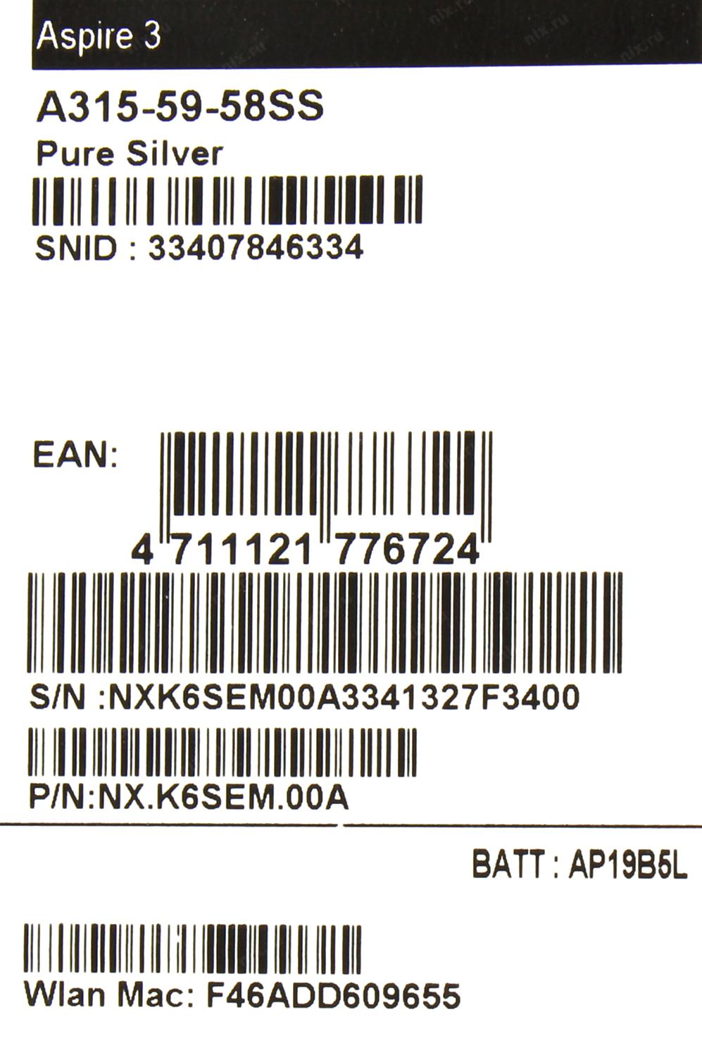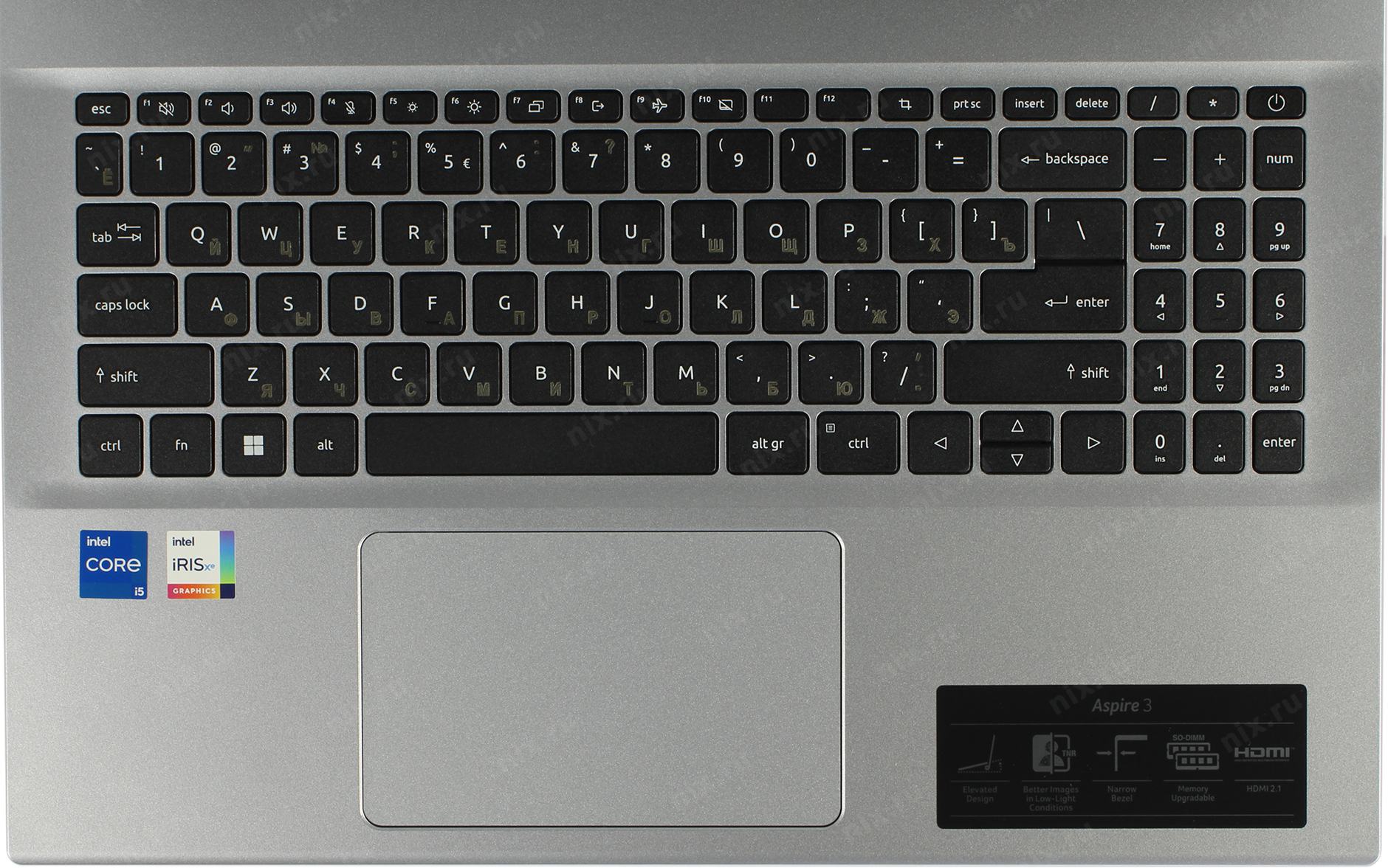 Ноутбук Acer Aspire 3 A315-59-58SS [NX.K6SEM.00A] Silver 15.6" (FHD i5 1235U/8Gb/512Gb SSD/noOs)