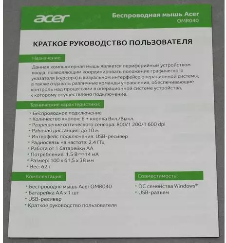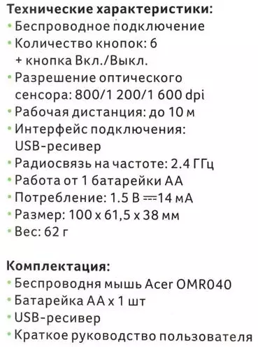 Acer OMR040 [ZL.MCEEE.00A] Mouse wireless USB (6but) black