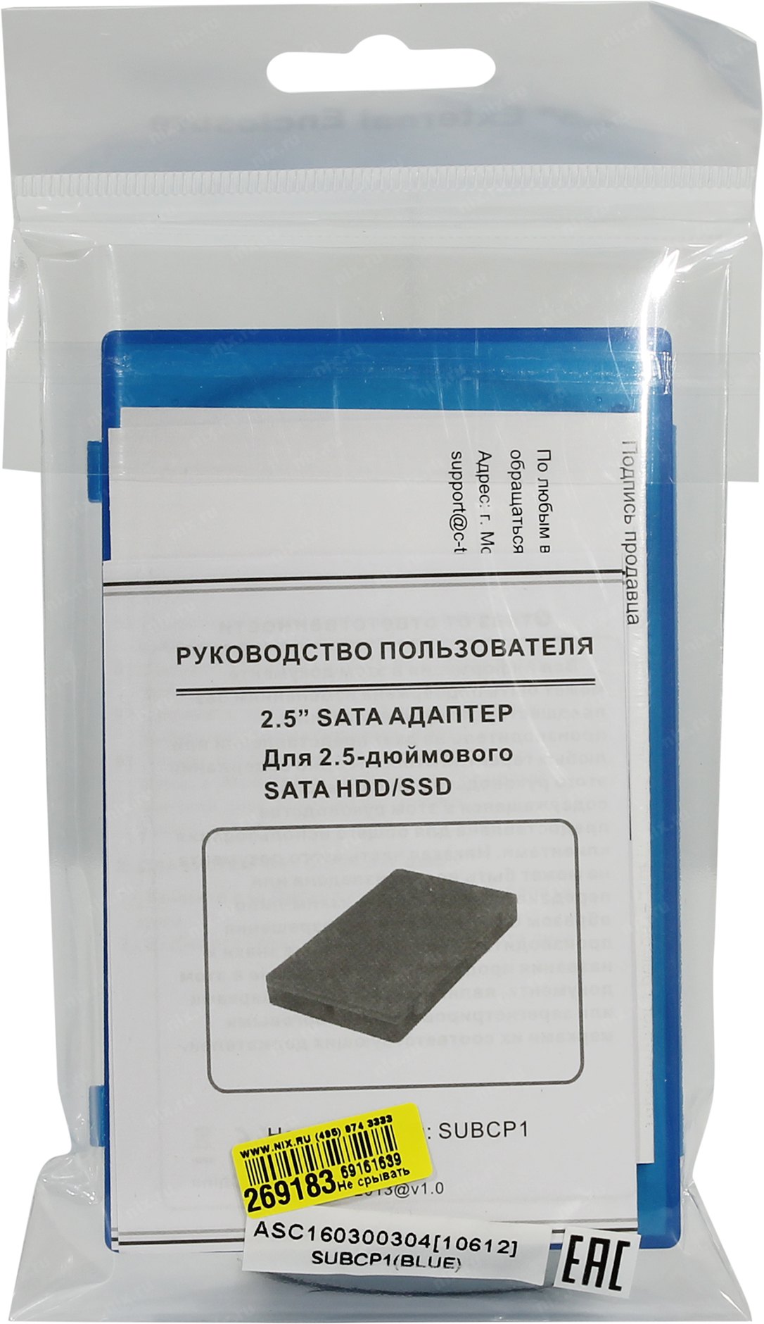 Контейнер для HDD AgeStar SUBCP1 Внешний корпус 2.5" SATA HDD/SSD blue (USB2.0, пластик, безвинтовая конструкция) (SUBCP1 (BLUE)) [SUBCP1(BLUE)]