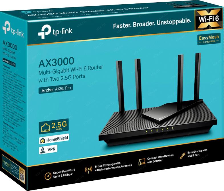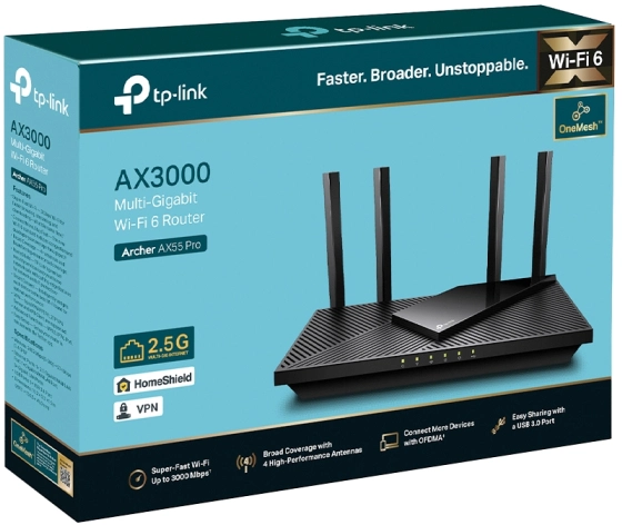 Маршрутизатор Archer AX55 Pro AX3000 Двухдиапазонный роутер Wi-Fi 6 AX3000 Двухдиапазонный роутер Wi-Fi 6 TP-LINK