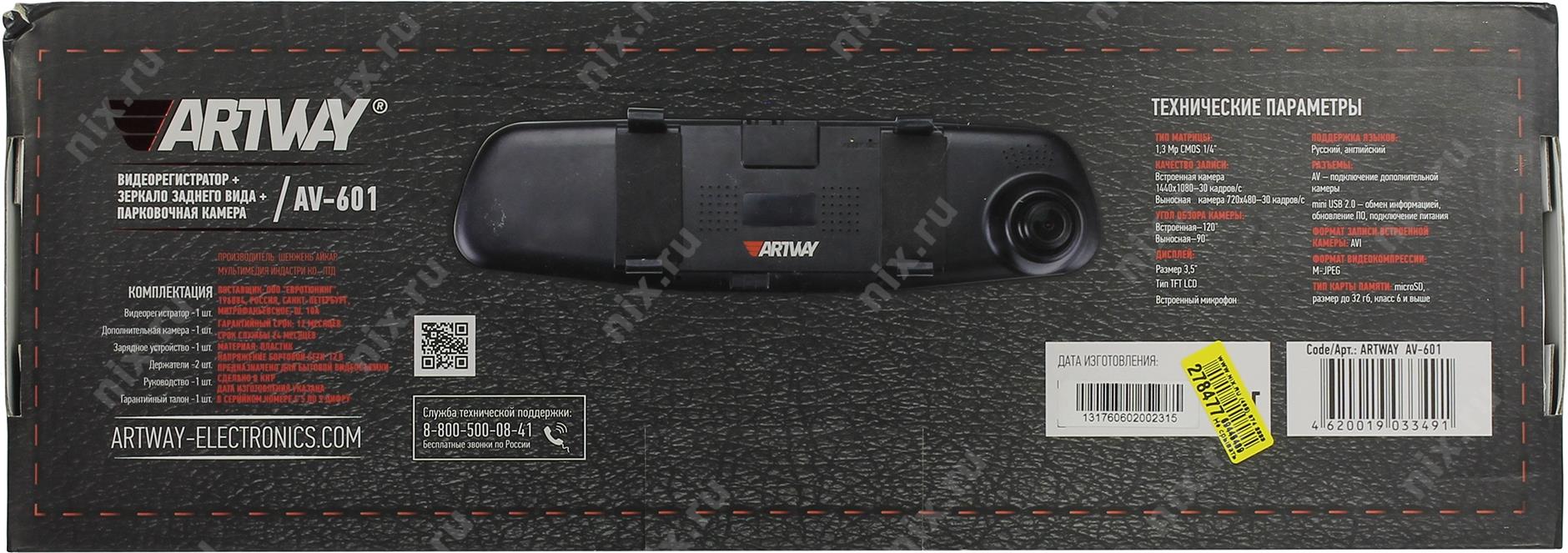 Видеорегистратор Artway AV-601 черный 2Mpix 1080x1920 120гр.