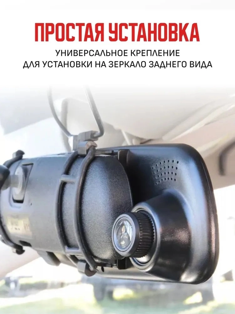 Автомобильный видеорегистратор, встроенный в зеркало заднего вида, с дополнительной водонепроницаемой камерой в комплекте, способный в режиме нон-стоп записывать видеоинформацию на карту памяти. Задняя водонепроницаемая камера может работать в качестве парковочной камеры. Данное устройство способно внести ясность в спорные ситуации, защитить вас от "подстав", подтвердить, что вы проехали на мигающий зеленый или желтый сигнал светофора.