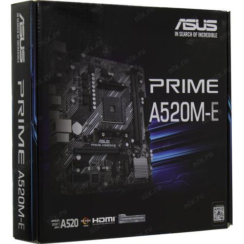 Материнская плата Asus PRIME A520M-E Soc-AM4 AMD A520 2xDDR4 mATX AC`97 8ch(7.1) GbLAN RAID+VGA+DVI+HDMI