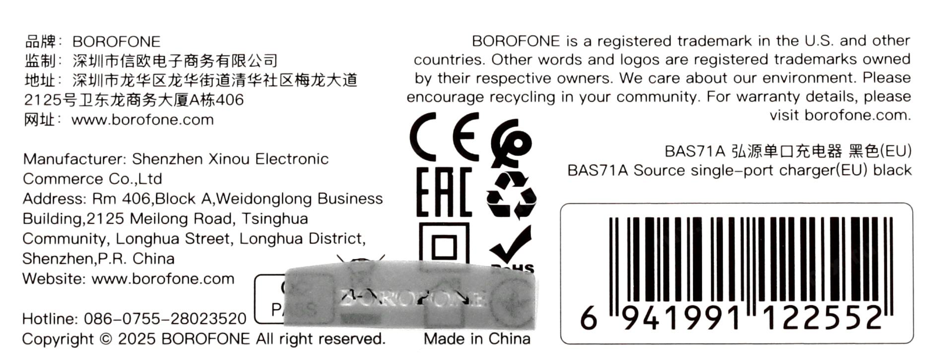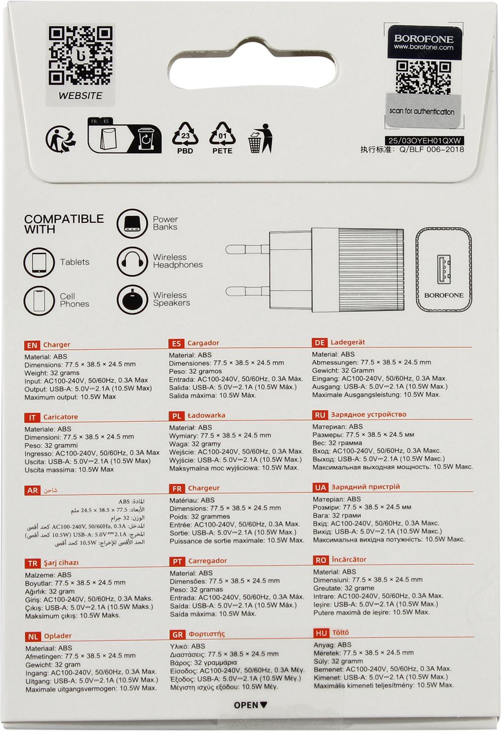 BOROFONE BAS71A Black < 122552> Зарядное устройство USB (Вых. DC5V, 10.5W, USB)