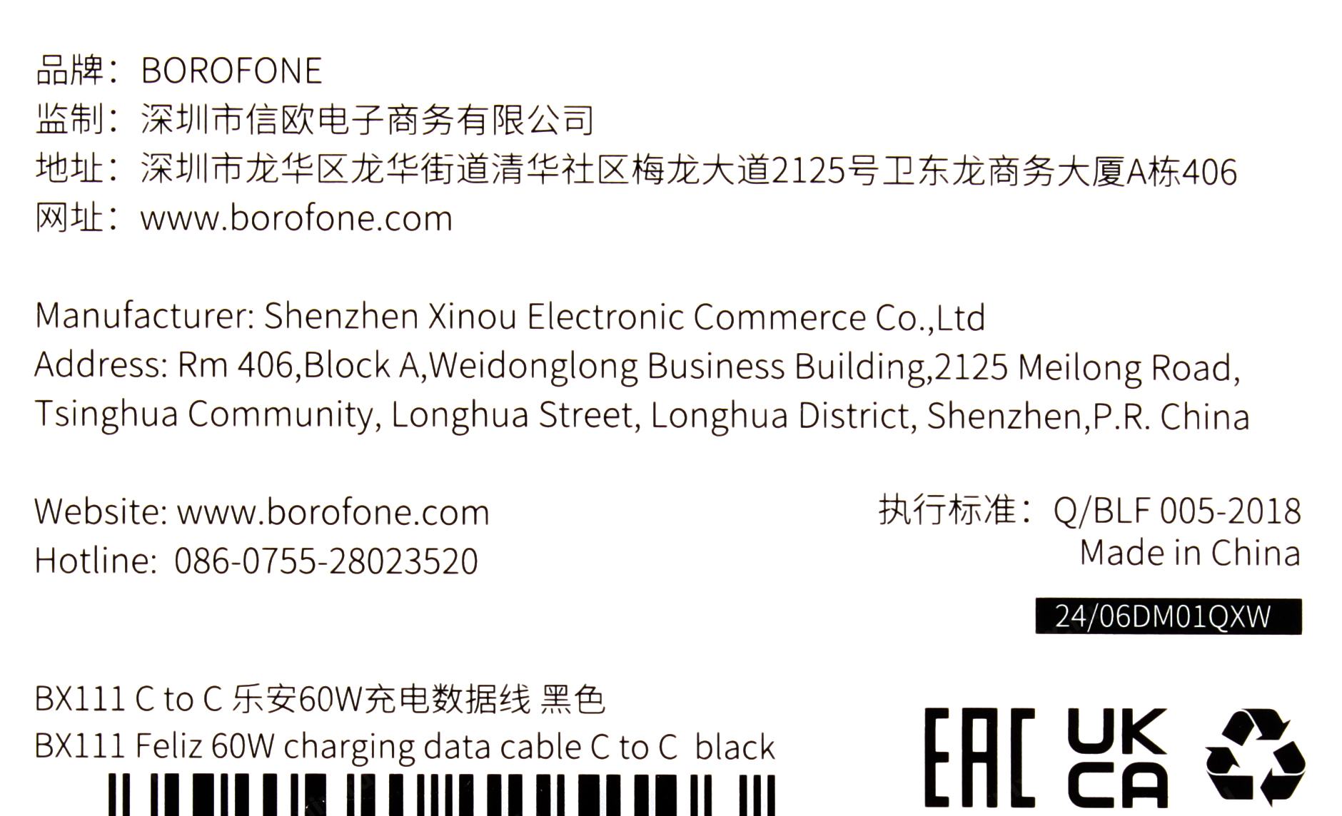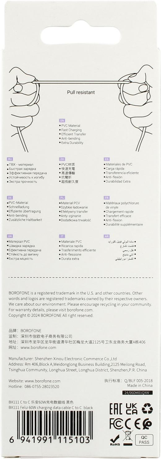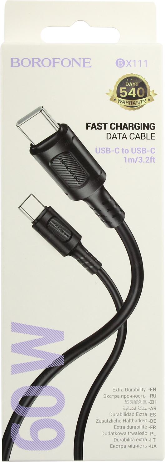 BOROFONE BX111 Black < 115103> Кабель USB-C --> USB-C 1м