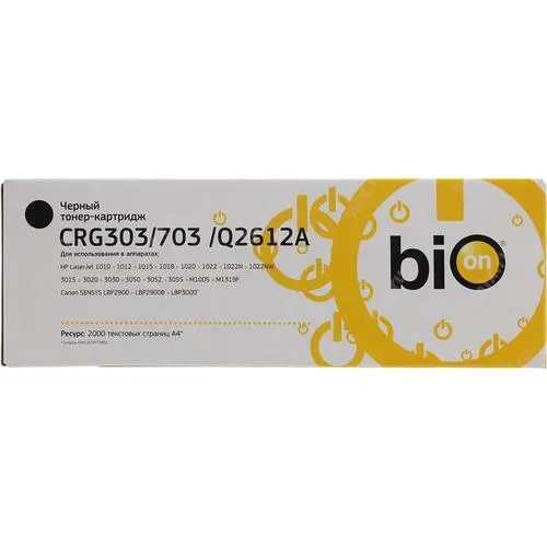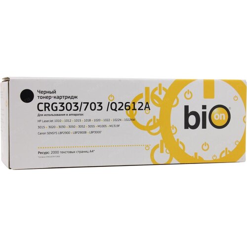 Расходные материалы Bion Cartridge Bion BCR-CRG303/703/Q2612A Картридж для HP (LaserJet 1010/1012/1015/1018/1020/1022/3015/3020/3030/3050/3052/3055/M1005/M1319; Canon i-SENSYS LBP2900B/LBP3000/LBP2900) (2000 стр.), Черный