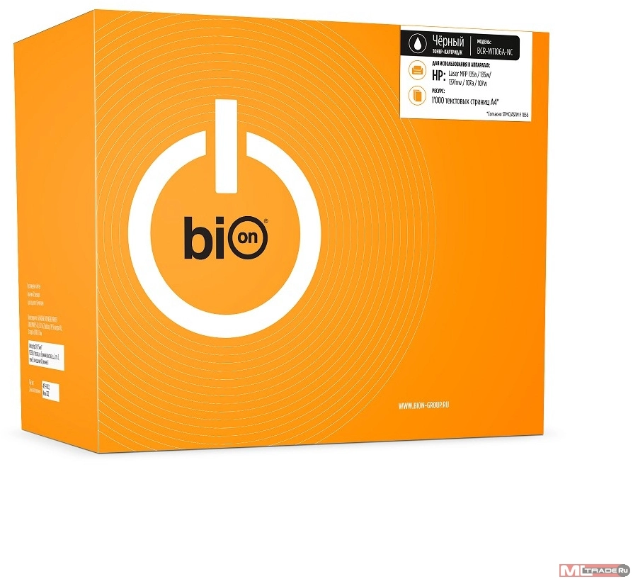 Расходные материалы Bion Cartridge Bion BCR-W1106A-NC Картридж для HP Laser 107a/107w/MFP135a/135w/137fnw (1000 стр.), Черный, без чипа