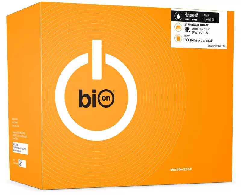 Расходные материалы Bion Cartridge Bion BCR-W1106XL-5K-NC Тонер картридж для HP Laser MFP 135a/135w/137fnw/107a/107w (5000 стр.), Черный, без чипа