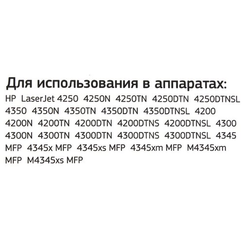 HP LaserJet 4250, 4250N, 4250TN, 4250DTN, 4250DTNSL, 4350, 4350N, 4350TN, 4350DTN, 4350DTNSL, 4200, 4200N, 4200TN, 4200DTN, 4200DTNS, 4200DTNSL, 4300, 4300N, 4300TN, 4300DTN, 4300DTNS, 4300DTNSL, 4345 MFP, 4345x MFP, 4345xs MFP, 4345xm MFP, M4345xm MFP, M4345xs MFP