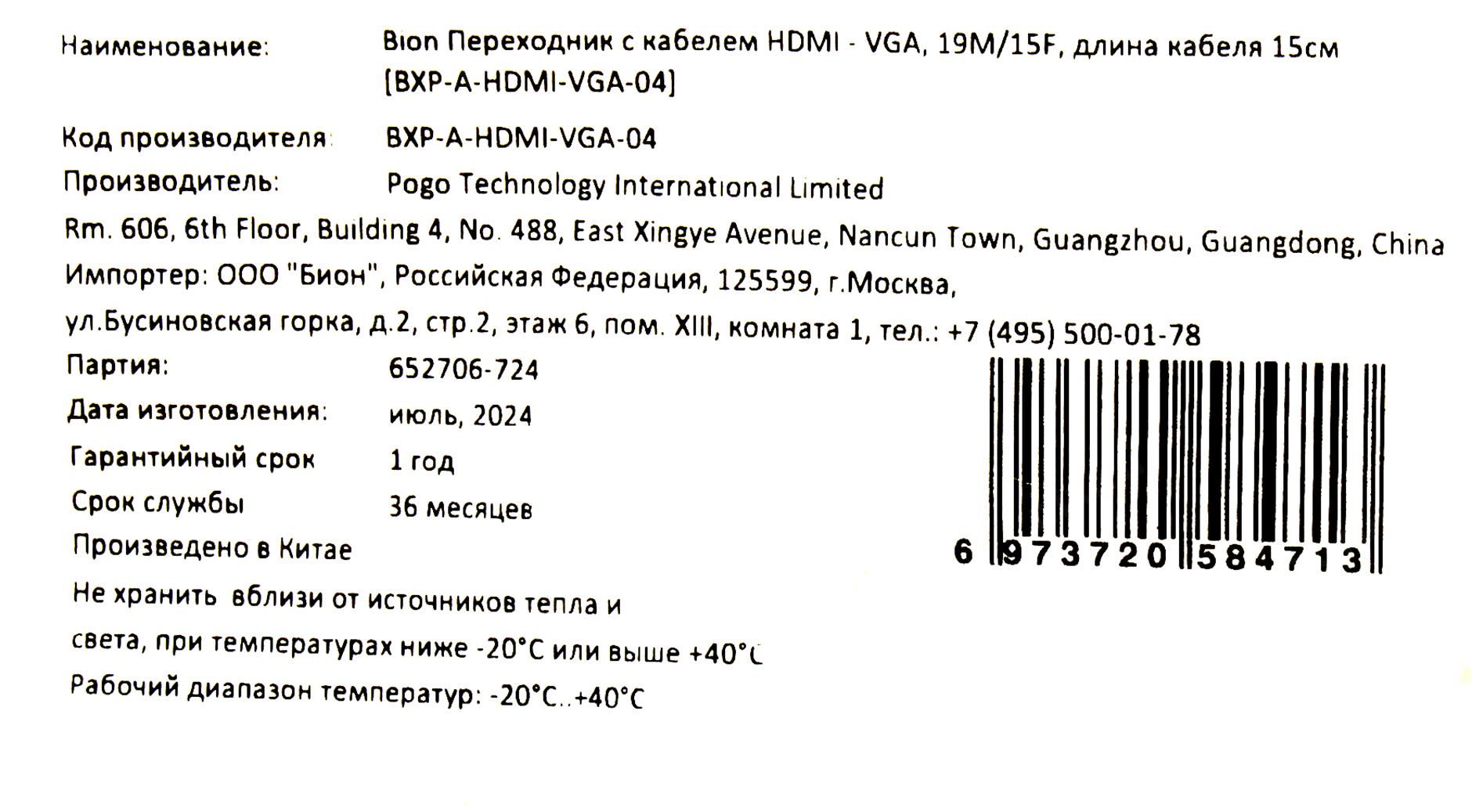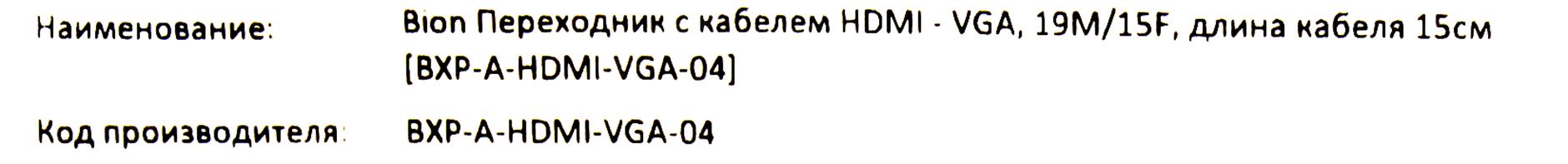 Переходники Bion Expert Bion Переходник с кабелем HDMI - VGA, 19M/15F, длина кабеля 15см [BXP-A-HDMI-VGA-04]