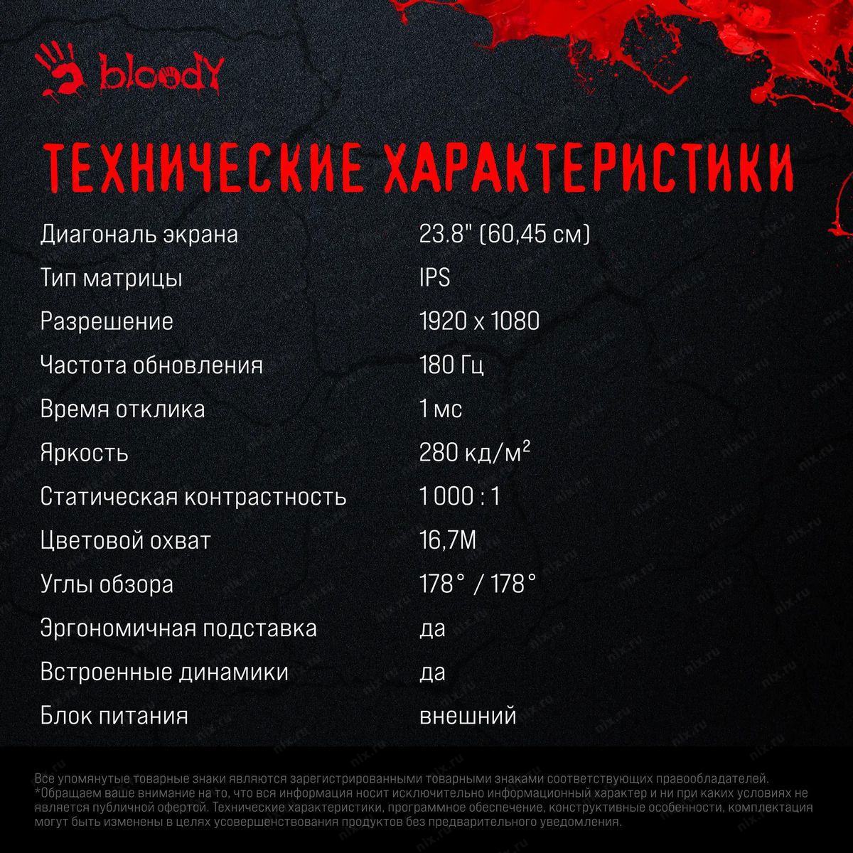 Монитор Bloody 23.8" MN240F черный IPS LED 1ms 16:9 HDMI M/M матовая 280cd 178гр/178гр 1920x1080 180Hz G-Sync DP FHD 2.9кг