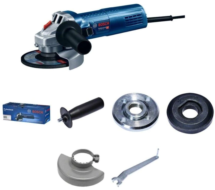 Углошлифовальная машина, ключ, гайка, дополнительная рукоятка.